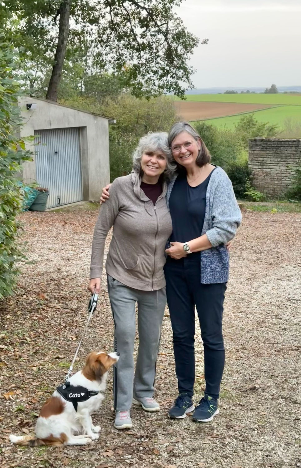 Cato is alweer vier geworden en maakt het prima, het is een kerngezonde blije hond. Ze gaat nog steeds elke zondagochtend samen met Hans naar een hondenschool in Mailly-le-Chateau waar ze samen met zo’n 15 andere honden van alles en nog wat leert.