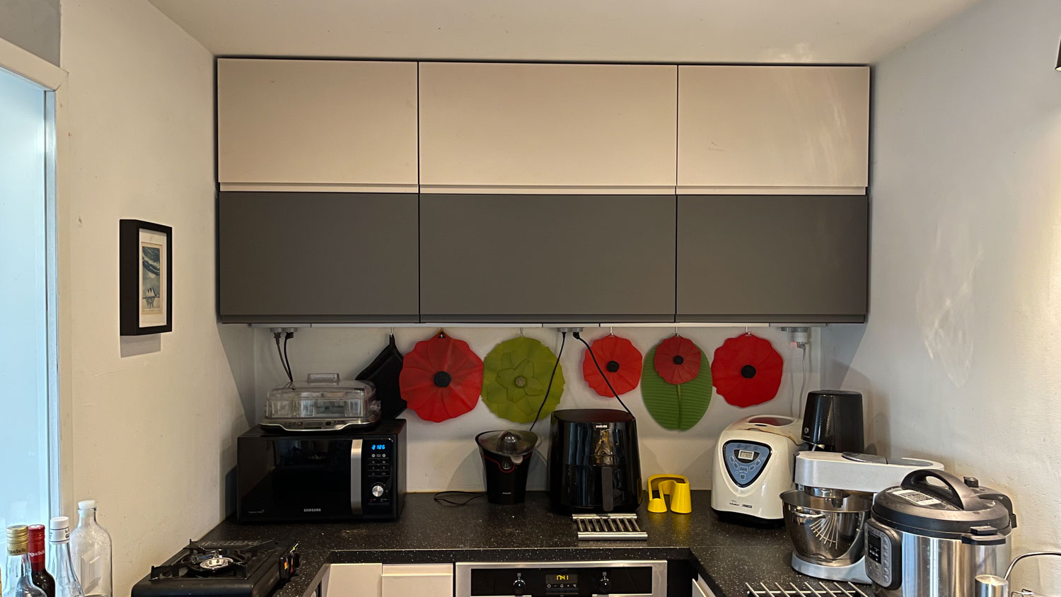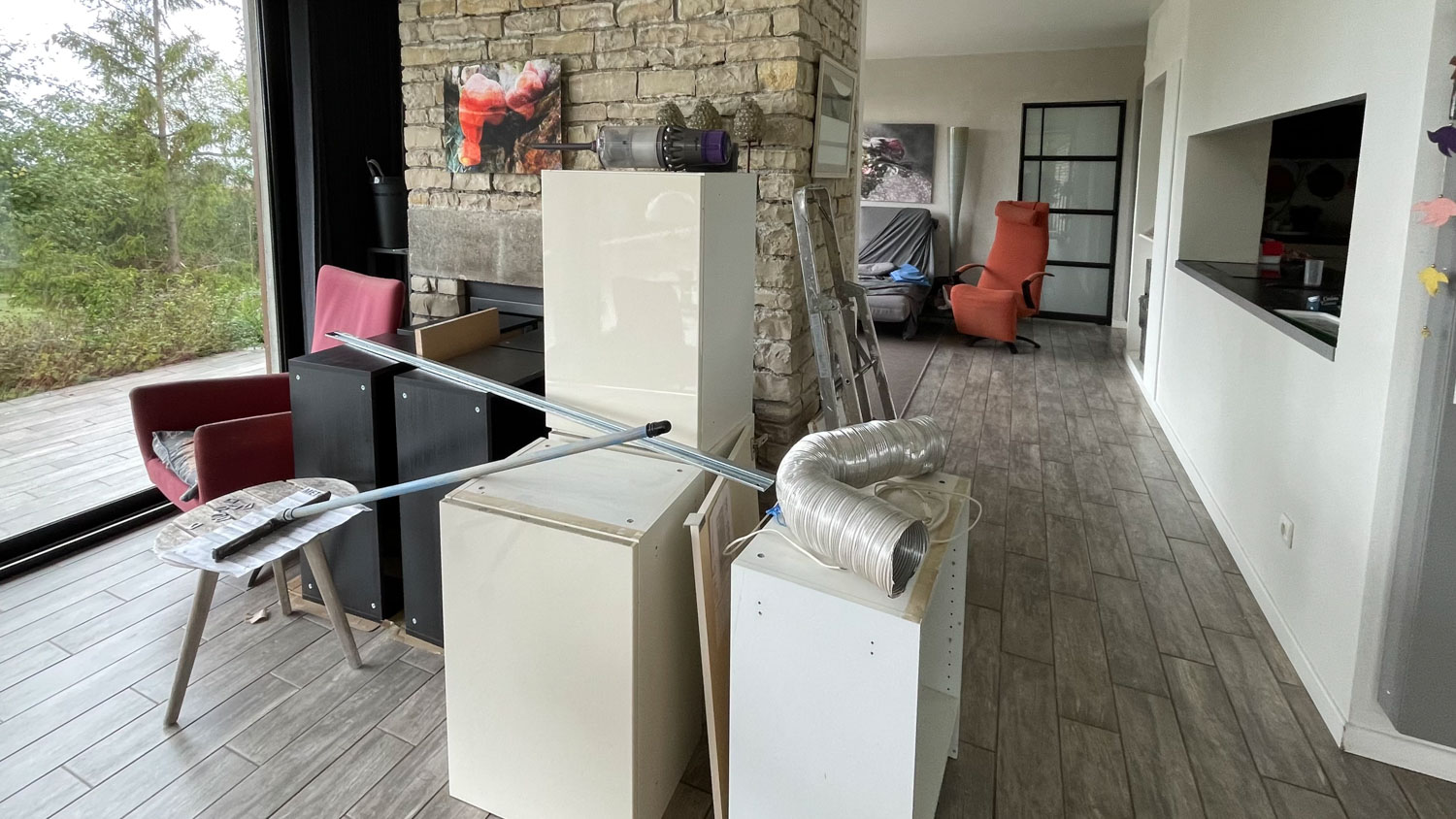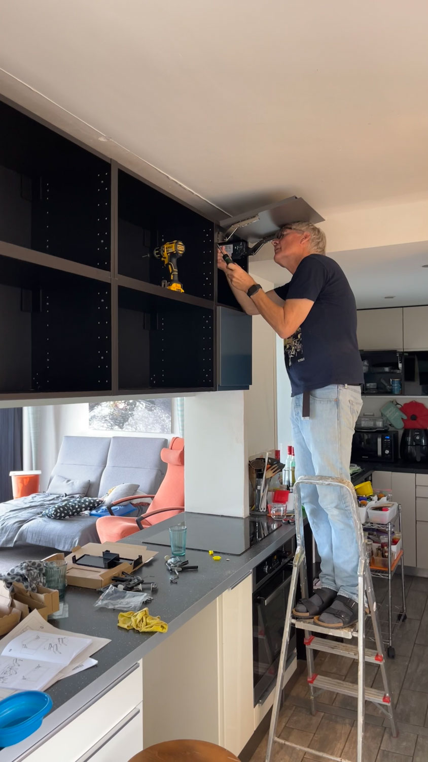Na het bezoek van Joris en Nathalie half september zijn we begonnen met de renovatie van de keuken. Nieuwe kasten en in het achterste deel van de keuken nieuwe frontjes. Het was hoog tijd, we hadden inmiddels overal verschillende ladefronten en deurtjes. De oude afwasmachine stopte er twee dagen voor de nieuwe kwam definitief mee, dat was goed getimed dus we hebben de afwas maar twee dagen met de hand hoeven doen. Met de nieuwe inductieplaat hadden we minder geluk. Die stopte er na 10 dagen mee en we hebben 5 weken moeten wachten op een nieuwe maar die doet het dan ook perfect.