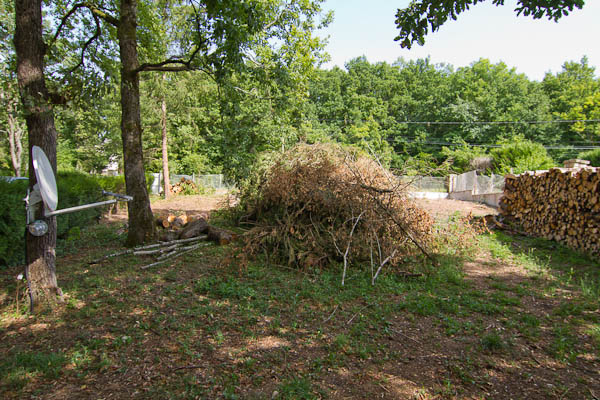 We waren nog niet terug in Avigny of buurman Jerome stond voor de deur: ’t was de hoogste tijd om het hout dat Hans afgelopen winter heeft gekapt, gezaagd en gekloofd op te halen uit het bos. Na 2 ochtenden heen en weer rijden met de tractor van Jerome ligt er nu zo’n 20 kuub hout op ons terrein. Het moet nu eerst minimaal 2 jaar drogen voor we het kunnen gaan gebruiken, dus voorlopig zullen we nog hout moeten kopen. Het smaakte toch naar meer dus Hans heeft zich inmiddels al weer ingeschreven voor zijn volgende Affouage.