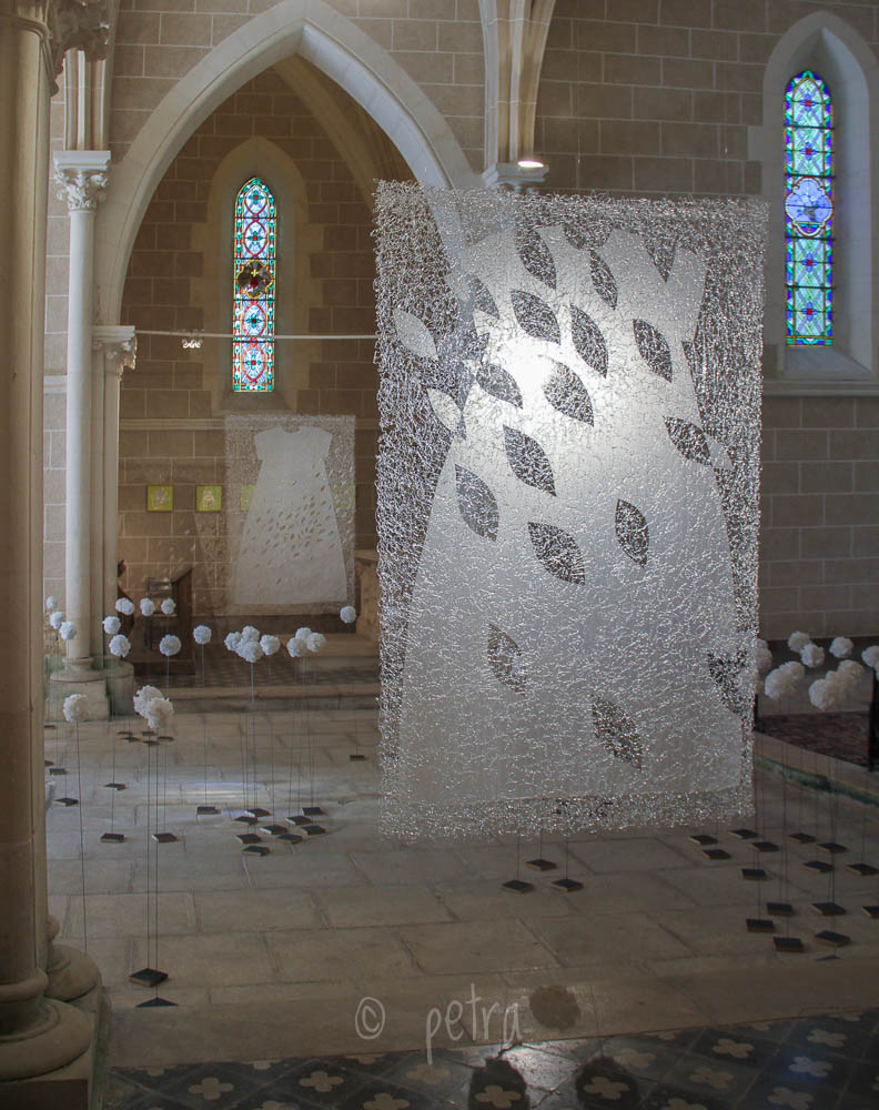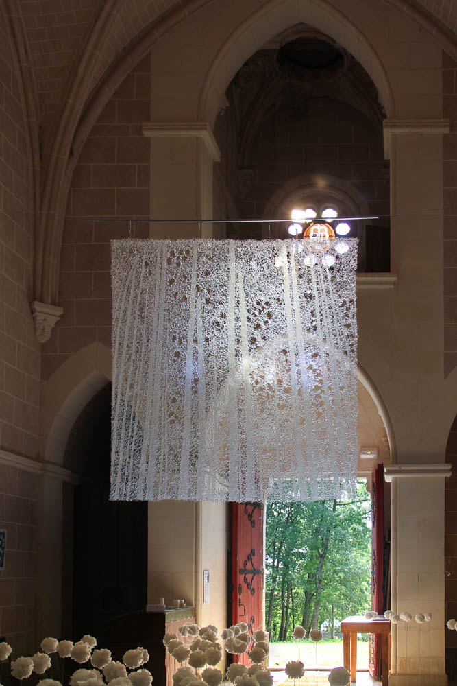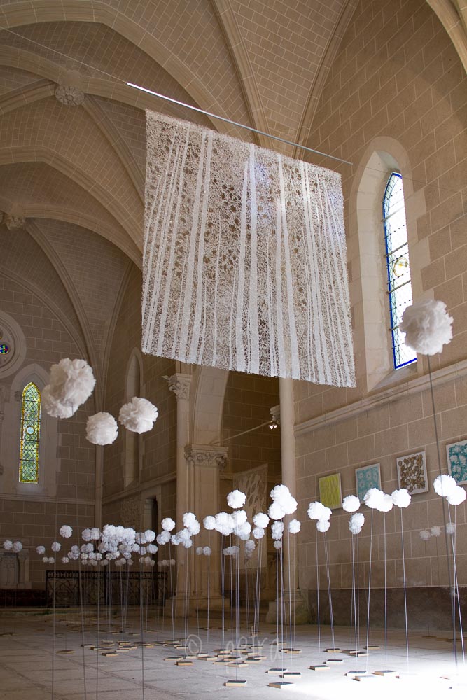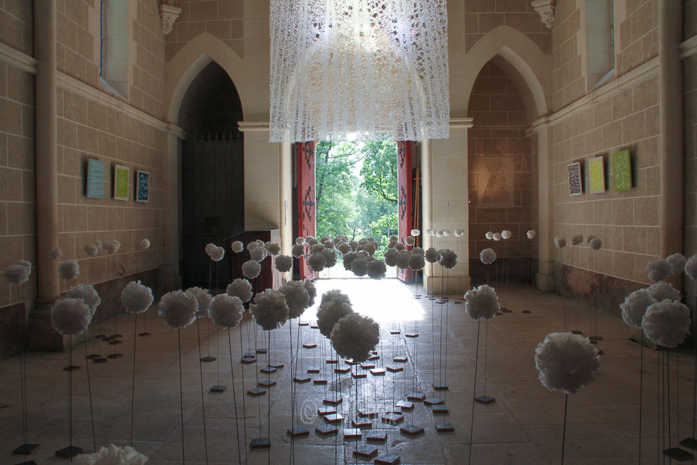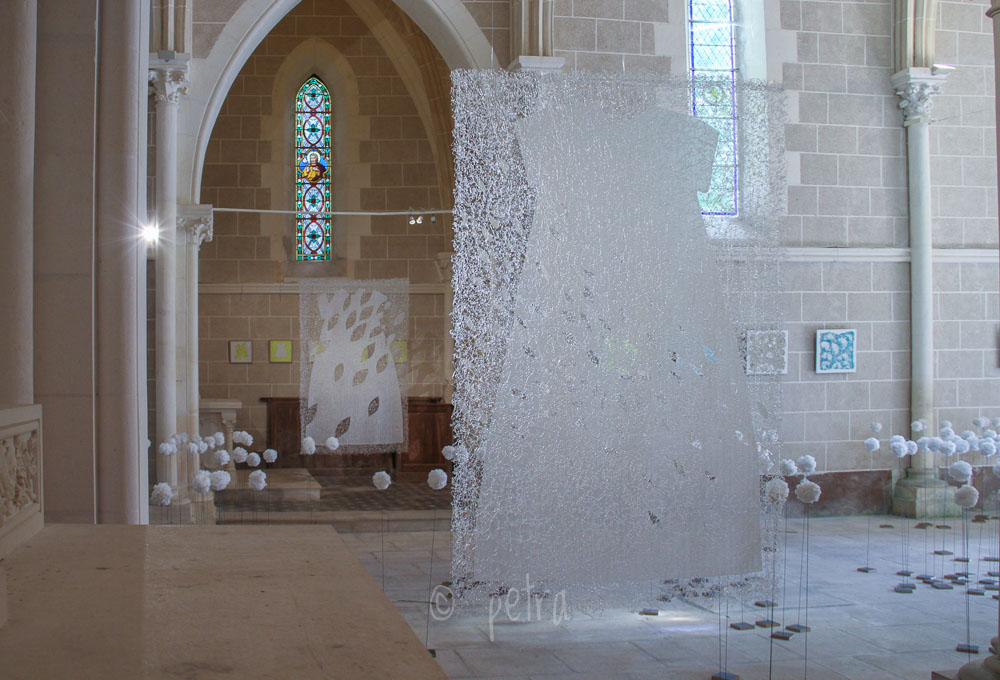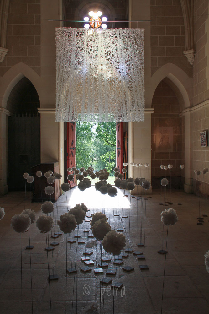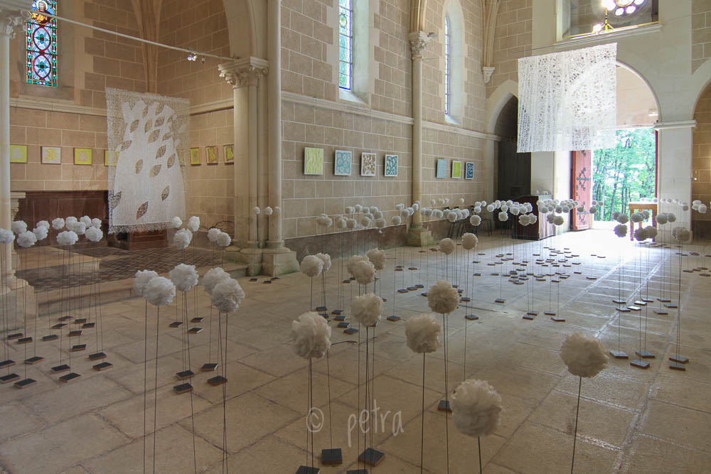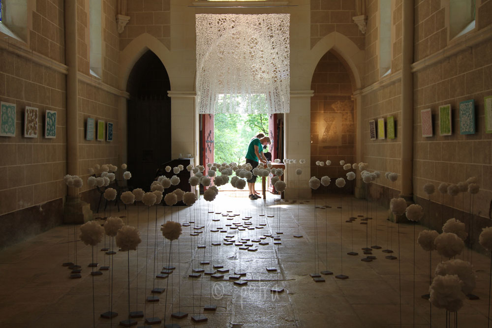 Expositie Sandrine in de Chapelle augustus 1, 2016 Sandrine Pincemaille exposeerde deze zomer in de Chapelle d’Avigny. Een interessante tentoonstelling met het laatste weekend een allerliefste suppoost.