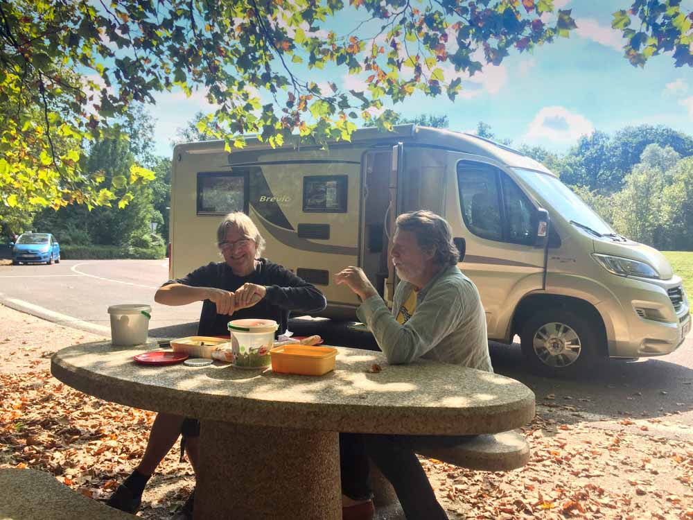 Eindelijk was de schouder van Petra zover dat we twee nachtjes konden gaan kamperen met de nieuwe bus. Die moest tenslotte ook getest worden en bovendien was er heel mooi weer beloofd. Al dat geklauter is met een arm niet handig. De eerste nacht stonden we op een camping nabij Beaune tussen de uitgestrekte wijnvelden die zich langzaamaan in herfstkleuren aan het tooien zijn.