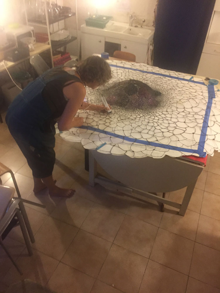 Van 8 september tm 31 oktober exposeren wij in Maison de la Tour in Valaurie. We presenteren daar ons autonome werk en de projecten die we met de bewoners daar gedaan hebben. Martin is met ons meegegaan om te helpen. We werden weer in de watten gelegd door Jacques en Dominique met heerlijke déjeuners op hun Provençaalse terras.