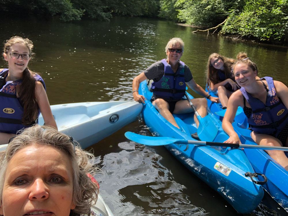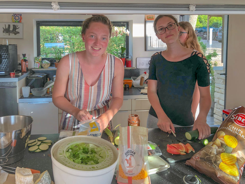 Sterre, Lilly en Sarah-Fay zijn dit keer een paar dagen eerder gekomen (woensdag) met de trein. Dolle pret natuurlijk. Spelletjes, pizza’s bakken, atelierbezoeken, kayakken, etc.
