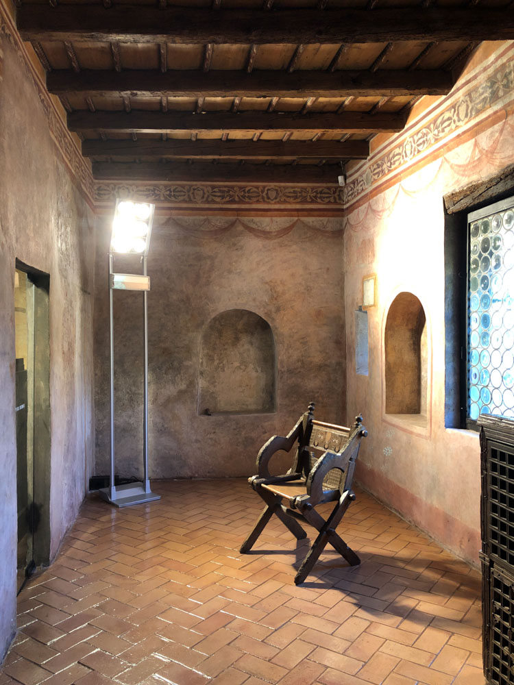 Arquà Petrarca is opgenomen op de lijst van i borgi più belli d’Italia (‘de mooiste dorpjes van Italië’). We zijn terug omhoog gefietst (heel steil!!) naar het huis van Francesco Petrarca, schrijver, dichter en grondlegger van het humanisme. Zijn huis wordt wel gezien als het belangrijkste schrijvershuis ter wereld. Ten eerste omdat het buitengewoon oud is: het dateert van circa 1370. Ten tweede omdat Petrarca het zelf ontworpen heeft met de bedoeling hierin een zelfportret te schetsen. En ten derde omdat het al vanaf de vroege 16e eeuw een museum is, in zijn soort het oudste ter wereld, en daarom al meer dan 500 jaar bezoekers en literaire pelgrims aantrekt.