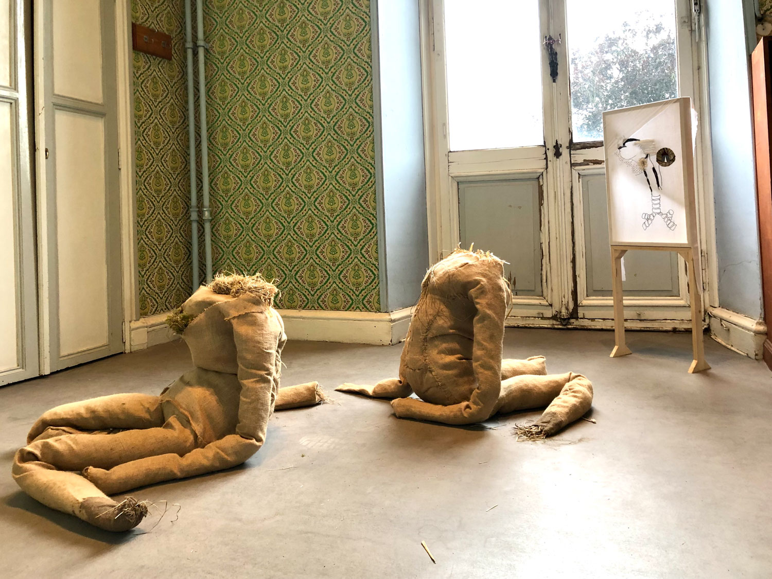 Dit keer waren er ook twee lokaties in Poperinge en bij het kasteel de Lovie. Poperinge centrum hebben we nog met de bus gedaan. Daarna de bus geinstalleerd op een nieuwe camperplek. Een aardige boer met een grote bruine hond die alles goed in de gaten hield. Van daar af konden we op de fiets naar kasteel de Lovie. Jammergenoeg begon te regenen onderweg, maar daar waren we op voorbereid. Het laatste stuk hebben we met regenjassen aan gedaan. Het was een leuk tochtje door de hop-tunnels. Het kasteel was een voormalige psychiatrische kliniek. Vergane glorie. Mooie dingen gezien en minder mooie dingen. Beeldverslag Watou 2021.