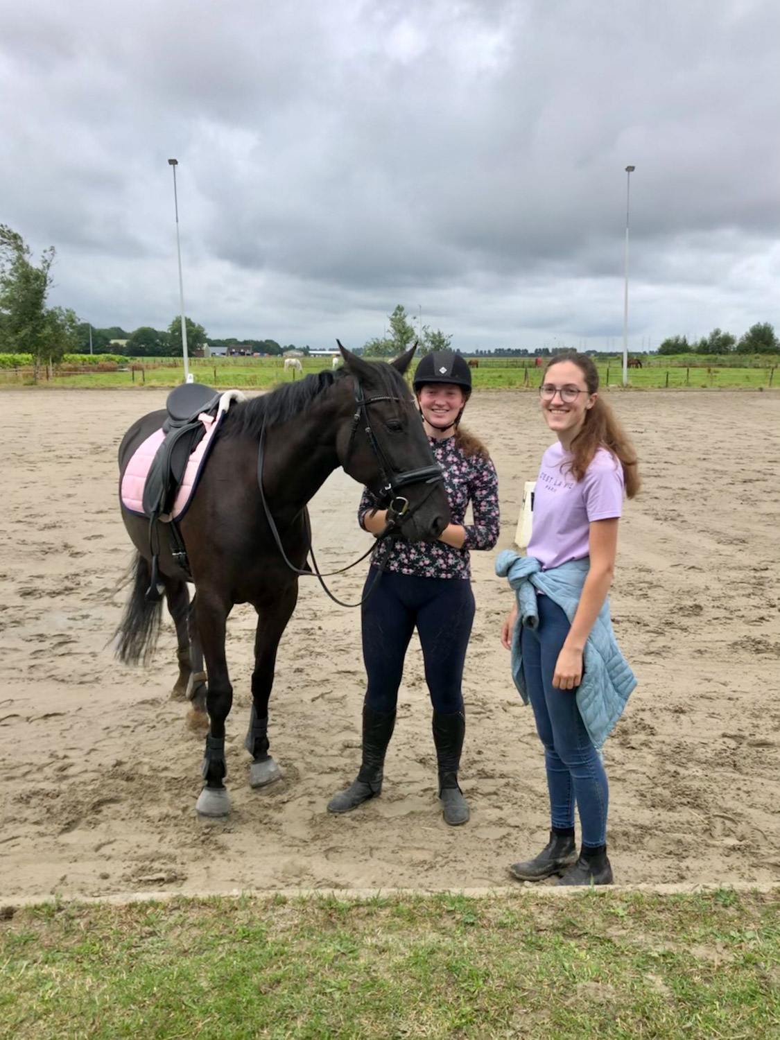 Woensdag 18 augustus een heerlijke dag doorgebracht met Mike’s meiden. We gingen naar de manege om kennis te maken met Kado, het zwarte paardje van Wouter waar Mike’s meiden voor zorgen. Sterre was bezig met springen en Lilly stond erbij om te helpen. Faye banjerde er ook rond. Het was zo leuk om te zien waar de meisjes werken en veel verblijven.Dappere Hans heeft zelfs een wortel aan Kado durven geven. Dapper. Na de lunch zijn we naar het bos gegaan waar Mike op 17 september zijn herdenkingsboom krijgt. Mooi plekje, het heeft helemaal niks begraafplaatsachtigs, maar meer een fijne verblijfs en wandelplek. Honden mogen er vrij rondlopen.  Er komt een amberboom die prachtig rood verkleurt in de herfst. Eenmaal thuis was het tijd voor een spel en daarna hebben we pannenkoeken van Lilly gegeten.