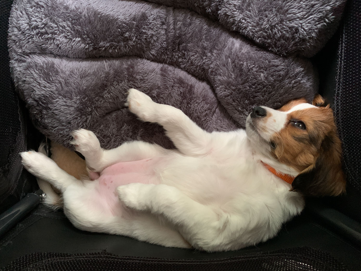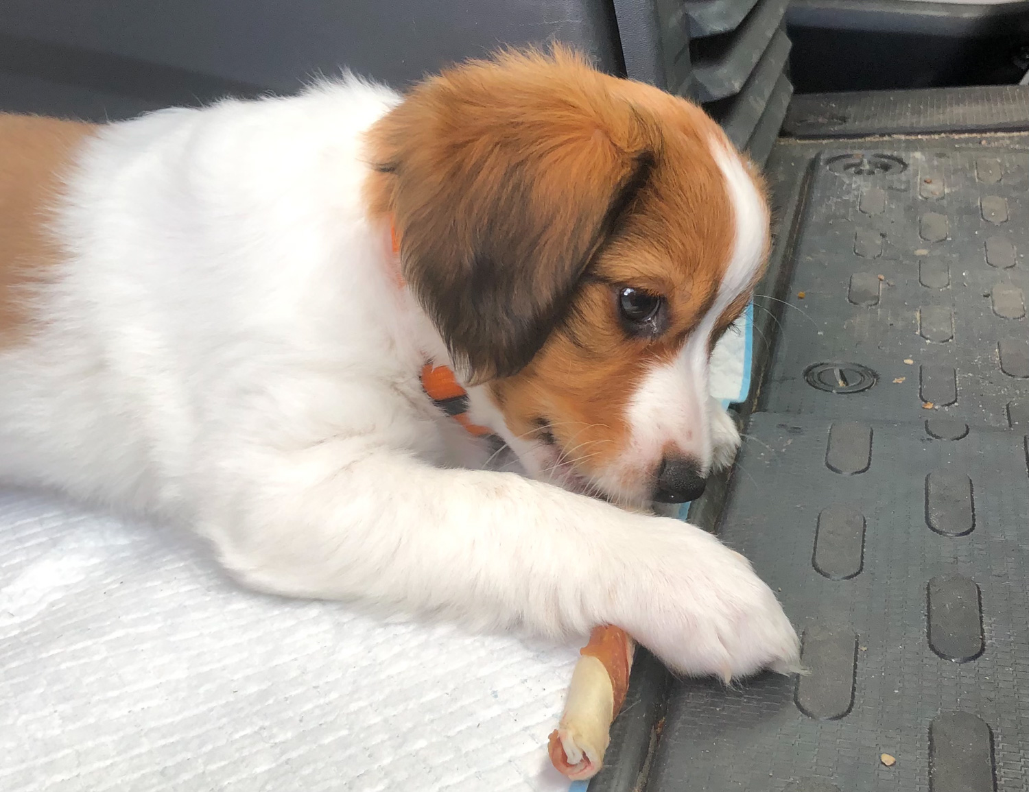 Maandag 23 augustus Cato heeft het fantastisch gedaan in haar reisbench. We hadden het stukje vacht uit het nest erin gelegd wat Gea heeft meegegeven. Om 5 uur jankte ze, toen heeft Hans haar buiten uitgelaten en daarna is ze heel zoet weer gaan slapen. Om 7 uur ben ik met haar naar buiten gegaan en kreeg ze brokjes. Voor we naar huis gingen zijn we in Vermenton even bij de dierenarts langs geweest voor een wormenkuurtje en we hebben Cato gelijk ingeschreven. Eindelijk naar huis en dat was natuurlijk ook heel spannend. We zijn nog niet veel verder gekomen dan de woon- en eetkamer, maar dat is meer dan voldoende voor zo’n kruimel.