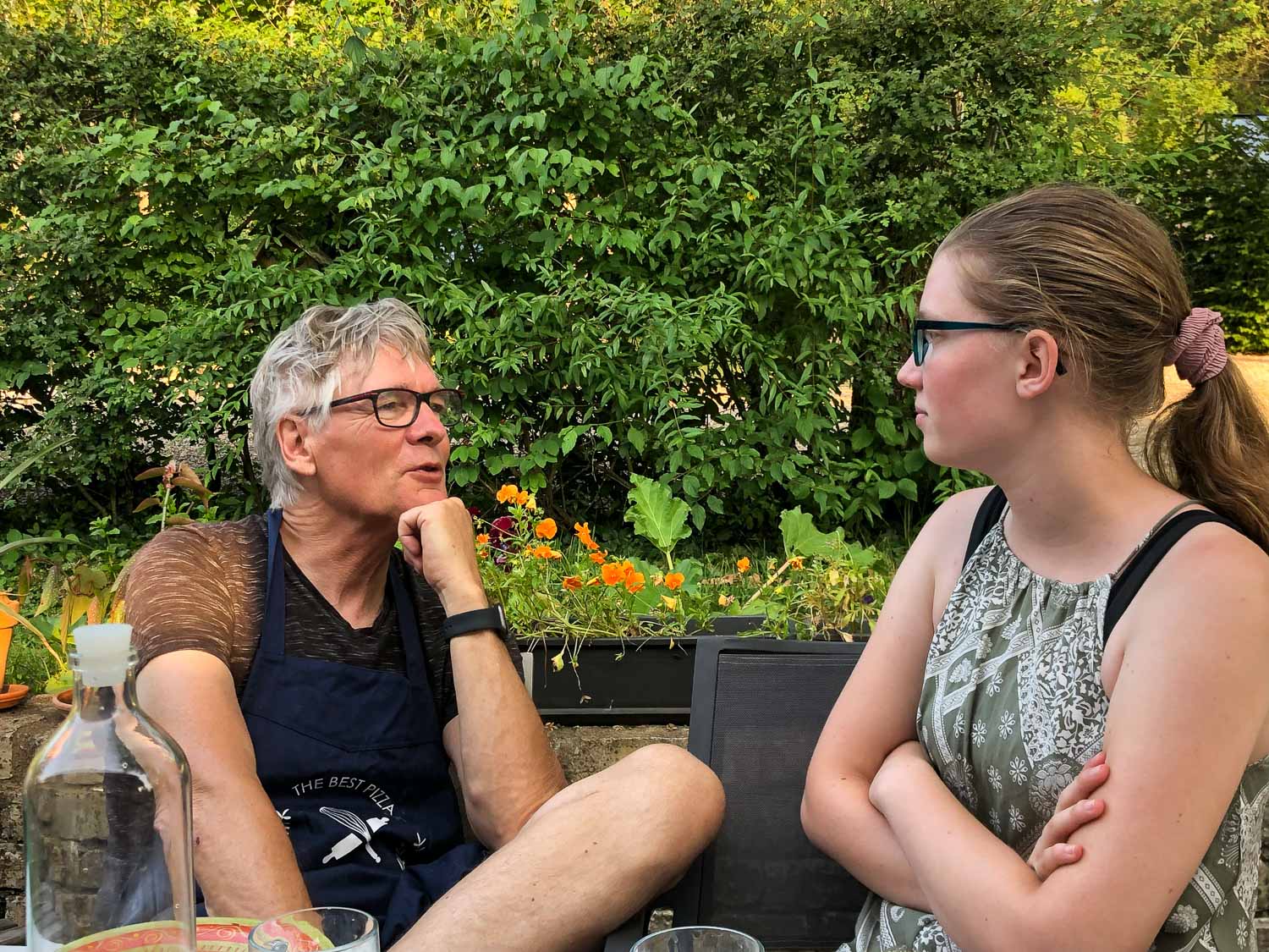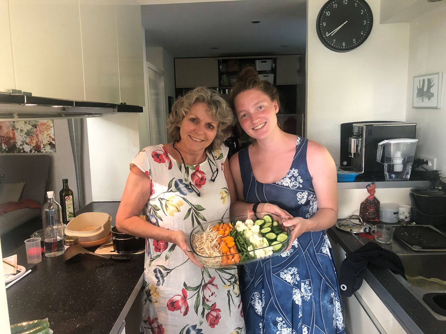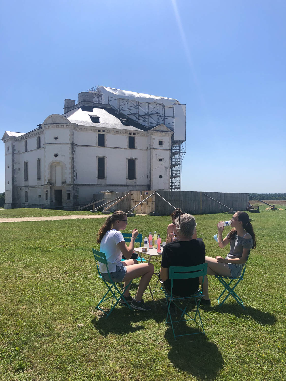 Rosemarijn, Sterre, Lilly, Sarah-Faye en hond Noor kwamen drie weken zomer vieren met ons in Avigny van 15 juli tot 9 augustus. Het was een heerlijke tijd met elkaar. We hebben gekletst, geluierd, getuinierd, geklust, kunst gekeken, gelezen, gefietst, gekayakt, gezwommen, gekookt en heel lekker gegeten, gefotografeerd, geblogd, Olympische spelen gekeken (vooral paarden!), prachtige zonsondergangen gekeken vanaf het terras, uitstapjes gemaakt en heel veel spelletjes gedaan, waaronder  buitenactiviteiten zoals croquet, het paaltjesspel en jeu de boules. We genoten van Noor en buurhond Dolly, die dagelijks op bezoek kwam. Cato, onze aankomende gezinsuitbreiding, was ook al een beetje aanwezig door de vele foto’s en video’s die Gea dagelijks stuurde. Roos’ project deze zomer was het uitzoeken van Petra’s stamboom.
