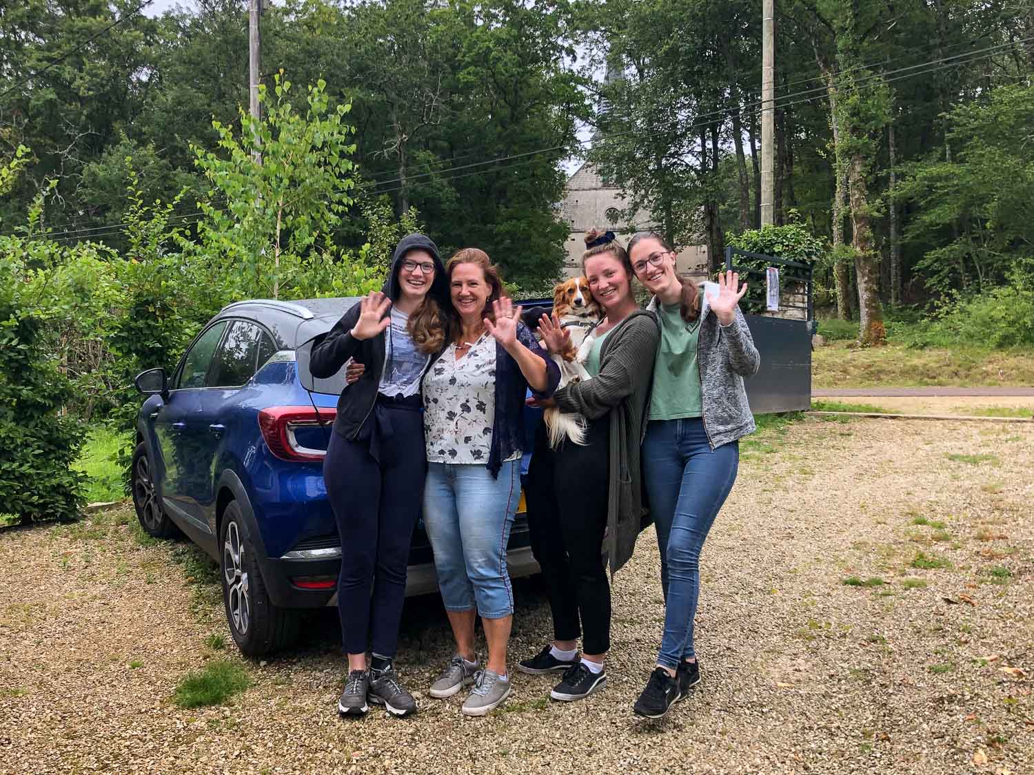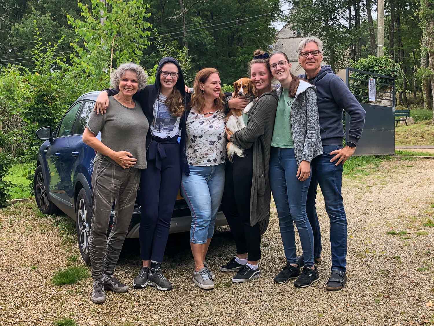 Rosemarijn, Sterre, Lilly, Sarah-Faye en hond Noor kwamen drie weken zomer vieren met ons in Avigny van 15 juli tot 9 augustus. Het was een heerlijke tijd met elkaar. We hebben gekletst, geluierd, getuinierd, geklust, kunst gekeken, gelezen, gefietst, gekayakt, gezwommen, gekookt en heel lekker gegeten, gefotografeerd, geblogd, Olympische spelen gekeken (vooral paarden!), prachtige zonsondergangen gekeken vanaf het terras, uitstapjes gemaakt en heel veel spelletjes gedaan, waaronder  buitenactiviteiten zoals croquet, het paaltjesspel en jeu de boules. We genoten van Noor en buurhond Dolly, die dagelijks op bezoek kwam. Cato, onze aankomende gezinsuitbreiding, was ook al een beetje aanwezig door de vele foto’s en video’s die Gea dagelijks stuurde. Roos’ project deze zomer was het uitzoeken van Petra’s stamboom.