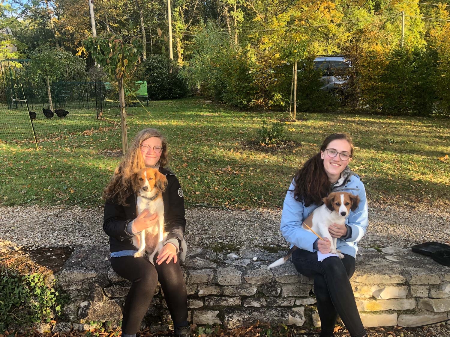 Wat een gezellig weekje hebben we weer doorgebracht met Rosemarijn, Sterre, Lilly, Sarah-Faye en Noor. Hoogtepunt natuurlijk de eerste ontmoeting van Noor met haar kleine zusje Cato. Het ging hartstikke goed en ze hadden veel lol met elkaar. Veel spelletjes, fietsen, kletsen, herinneringen ophalen, tuinieren, zonsondergangen kijken en vooral gezellige maaltijden met elkaar, zelfs af en toe in de tuin. Verder hebben we vijf kippen bij Michel opgehaald en in de boomgaard een prachtig uitrenveld opgezet voor Kasja, Purka, Muffin, Soof en Carmen. Lilly heeft hen gedemonstreerd hoe ze het nachthok moesten inklimmen en dankbaar werd er direct een ei gelegd wat Petra op haar verjaardag verorberd heeft.