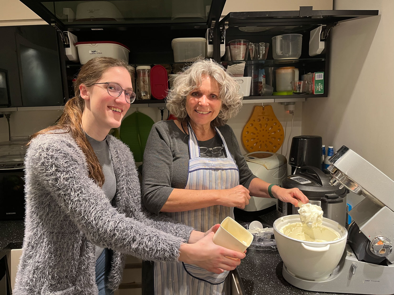 Qua eten was het thema deze week: Toetjes. Elke dag een heerlijk ijsje of taartje uit de collectie van Thiriet en voor Lilly eigengemaakt yoghurtijs. Ook de traditionele Galette des Rois gegeten, waarbij Faye vanzelfsprekend de koningin bleek te zijn. Ook zelf pasta gemaakt met de verse eitjes van de eigen kippen.