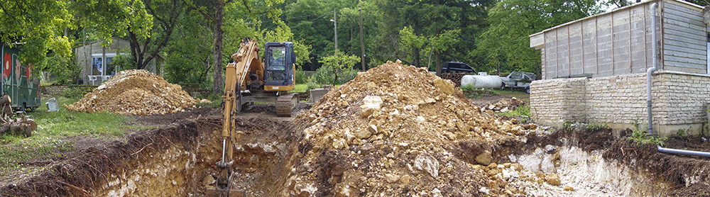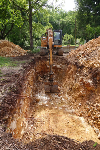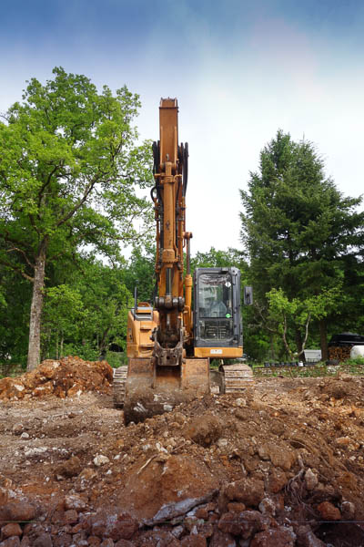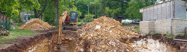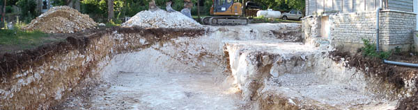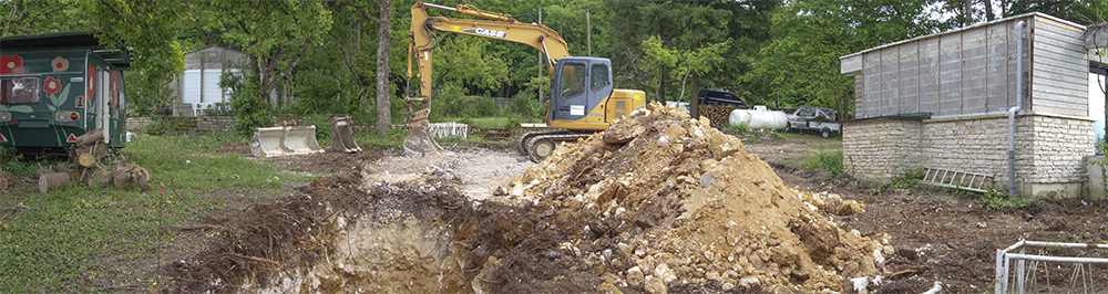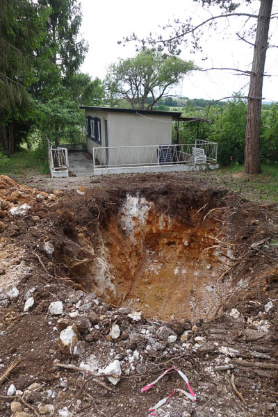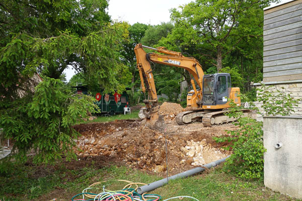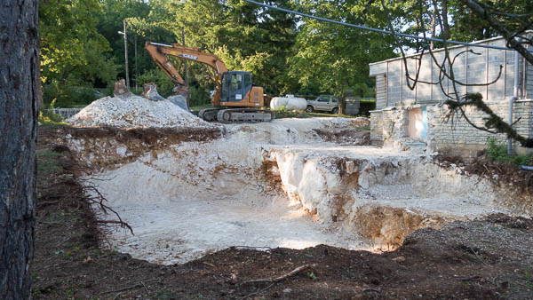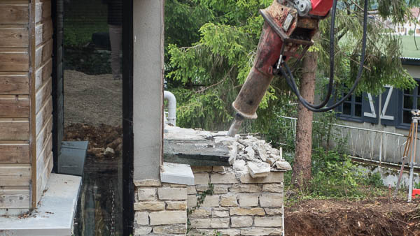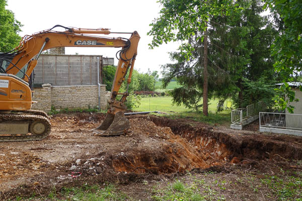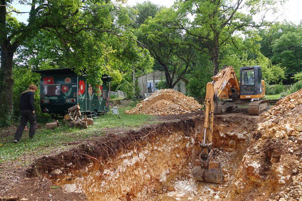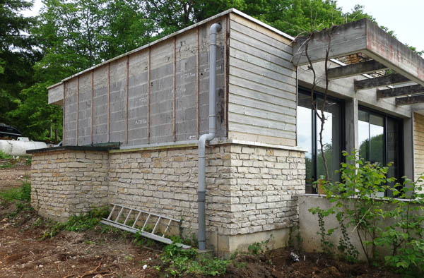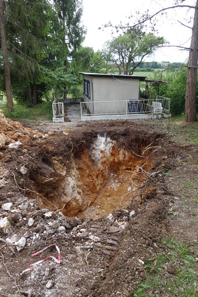 En verder gaat de verbouwing ook gestaag door. Het gat is ondertussen ‘klaar’ en wordt nu gevuld met een houten bekisting voor het storten van het fundament. Ook is er een mega schaftkeet in de tuin geparkeerd en is de pneumatische hamer door ander speelgoed vervangen.