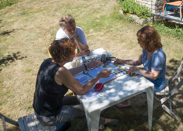 Na thuiskomst in Frankrijk hebben we een start gemaakt met de promo voor de expositie van Petra die op 5 juli in de Chapelle d’Avigny plaats zal vinden. Folders, kaarten, affiches en info-borden gemaakt. Daarna de regio door om een en ander te verspreiden.