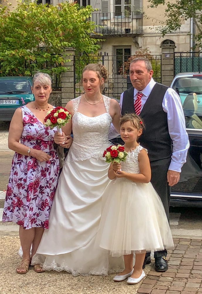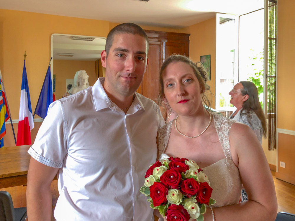 Vandaag trouwde Aurelia (de dochter van buurman Jerome) met haar Fréderic. Het was geen gewone bruiloft. Ze hadden gekozen om mee te doen aan het reality tv-programma Quatre myriages et ene lune de miel. Het principe van dit programma is dat het bruidspaar een droom huwelijksreis kan winnen. In een week zijn er vier bruiloften en de bruiden becommentariëren en beoordelen de bruiloften van elkaar. De hele dag werden ze gevolgd door de cameracrew van TF1. Je werd er onrustig van, je moest constant op je qui vive zijn. De middag begon met de doop van de jongste zoon om 14 uur in de kerk van Mailly-la-Ville. Om 4 uur was de huwelijksvoltrekking op het stadhuis door Jeannine, onze burgemeester en om 17 uur in de kerk. ’s Avonds groot feest in de feestzaal van Mailly tot diep in de nacht.