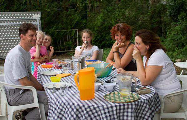 Zodra wij gasten hebben schieten wij ook in de vakantie-stand. Veel luieren, lezen, spelletjes doen, pingpongen, zwemmen in de Yonne, kayakken op de Cure, lampionnenoptochten, rommelmarkten, concerten, koken, lekker eten, etc. etc. Werner heeft ons zelfs een spoedcursus lassen gegeven. Erg leuk, smaakt naar meer.