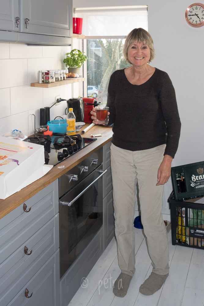 Cato was natuurlijk door het dolle heen. Die had bij Lydie gelogeerd en dat is allemaal prima gegaan. Het opkrabbelen was al met al best zwaar tot nu toe. Elke dag proberen de knie wat verder te strekken en te buigen en Petra had nogal wat complicaties met heup en rug wat het zitten moeilijk maakte. De verpleegster kwam twee keer in de week de wond verzorgen en haalde na 21 dagen de hechtingen eruit. Dat was fijn, want daarna kon Petra haar zwembadje wat het oefenen veel makkelijker maakte. Ook mochten we vandaag stoppen met antistollings prikjes tegen trombose in de buik waar we vandaag.