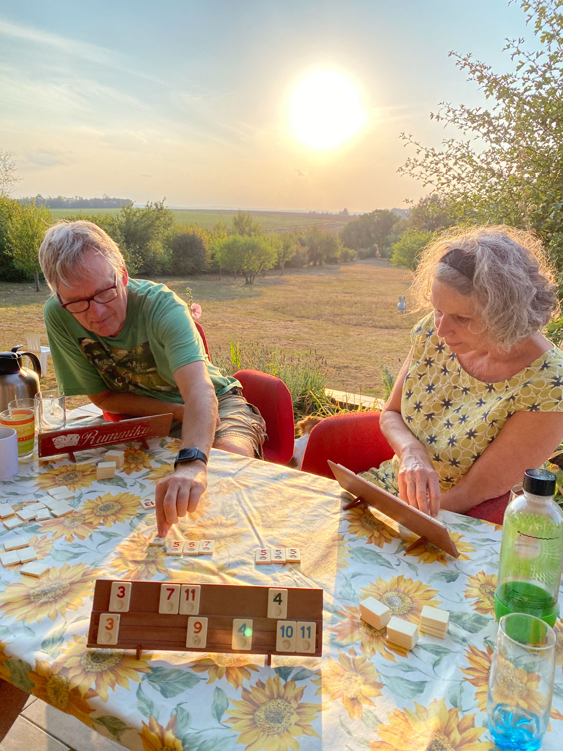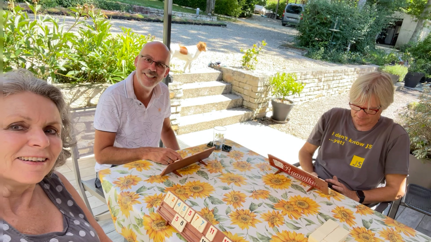 Marijcke, Michel, Pepijn en Vigo kwamen weer een dagje op bezoek. We zijn inmiddels twee weken na hun vorige bezoek en nu waren ze op de terugweg van vakantie en verbleven 2 nachtjes in Les Coutas, de Chambre d’hôte van Greg en Adeline in Mailly-la-Ville. Maandagavond hebben we met elkaar pizza gegeten en dinsdag was de dag goed gevuld met spelletjes. We sloten de dag met hen af bij de Snack in Mailly.