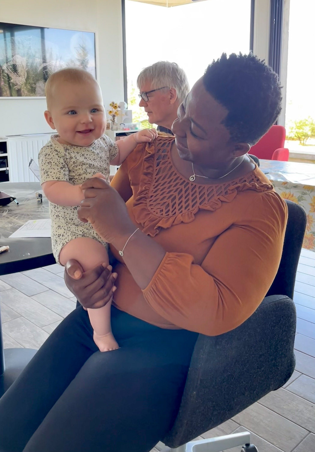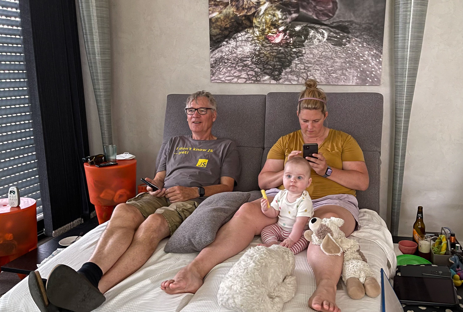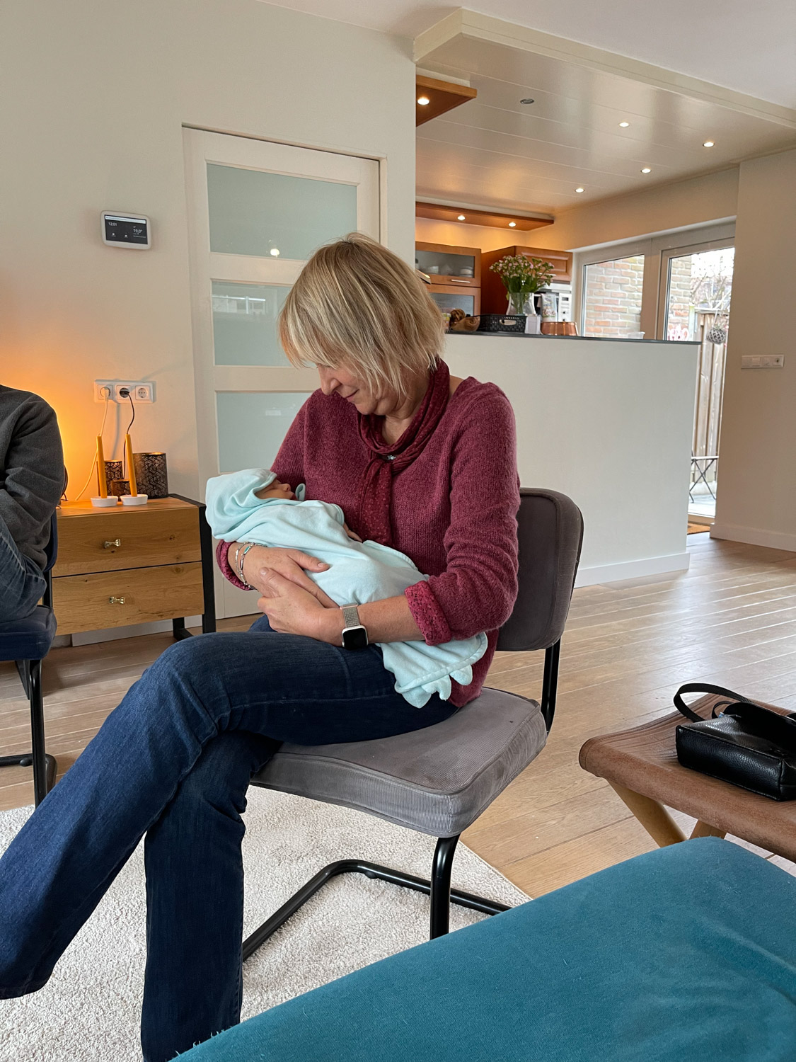 Na een nacht in een mottige Premiere Class hotelkamer aan de Belgisch-Franse grens gingen we maandagochtend 17 januari op babybezoek bij Finn, het kersverse dochtertje van Emily en Werner. Het is zo’n zoetje. Els was er ook en het was heel fijn om die weer te zien. De laatste keer was in Florida twee jaar geleden.