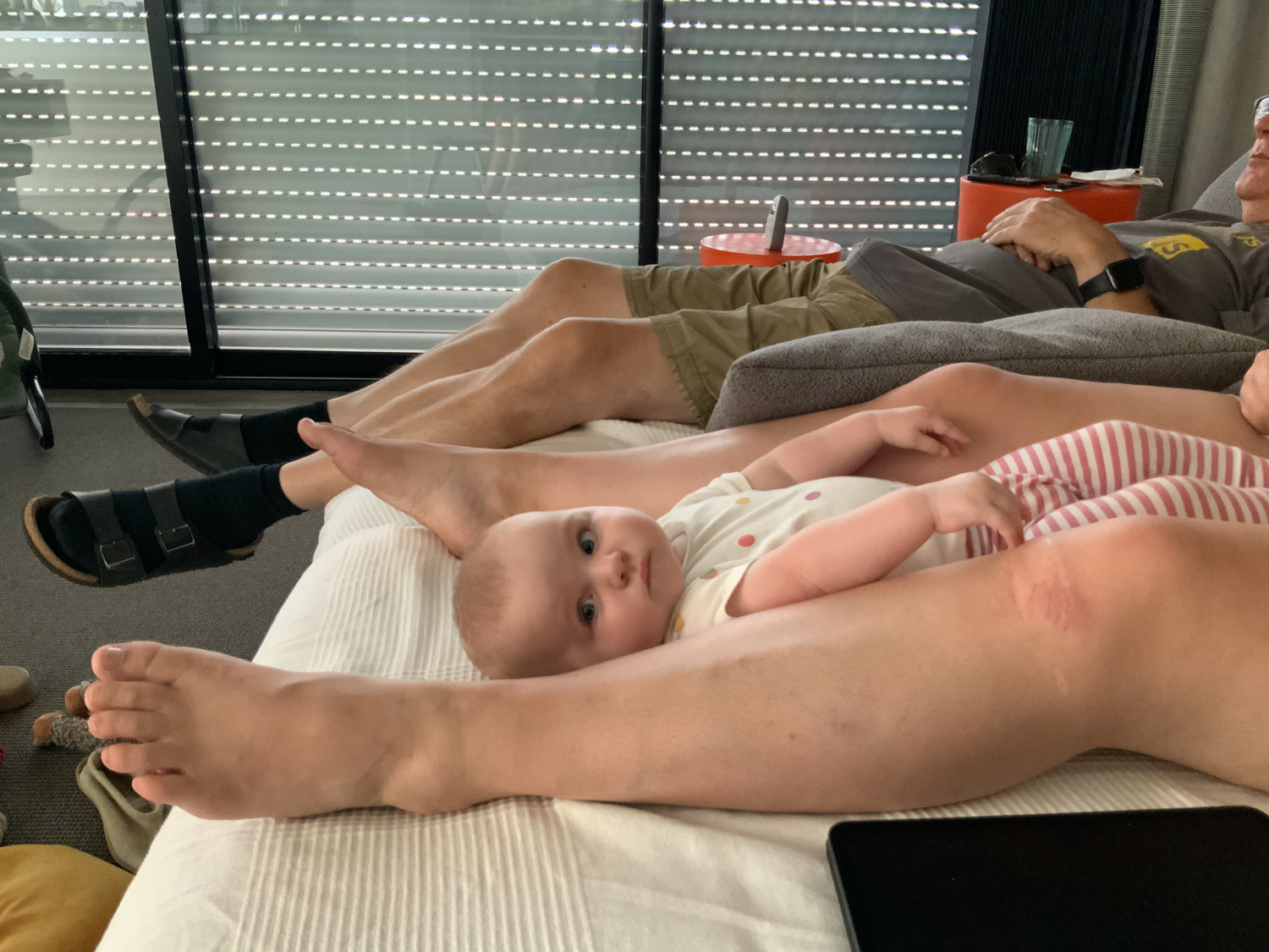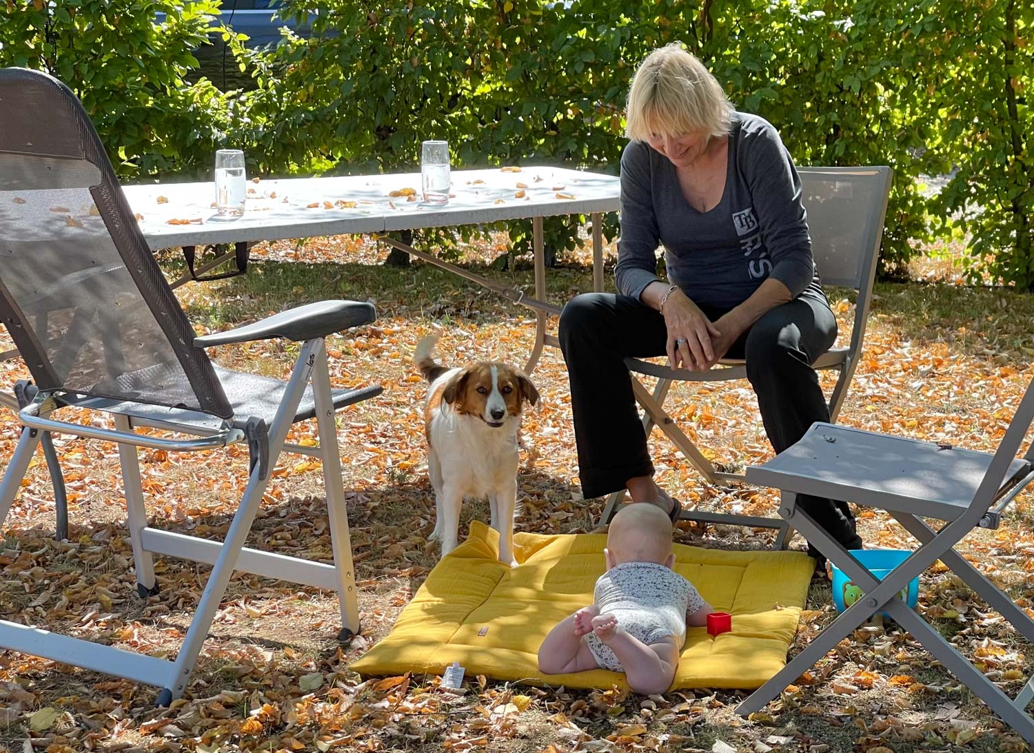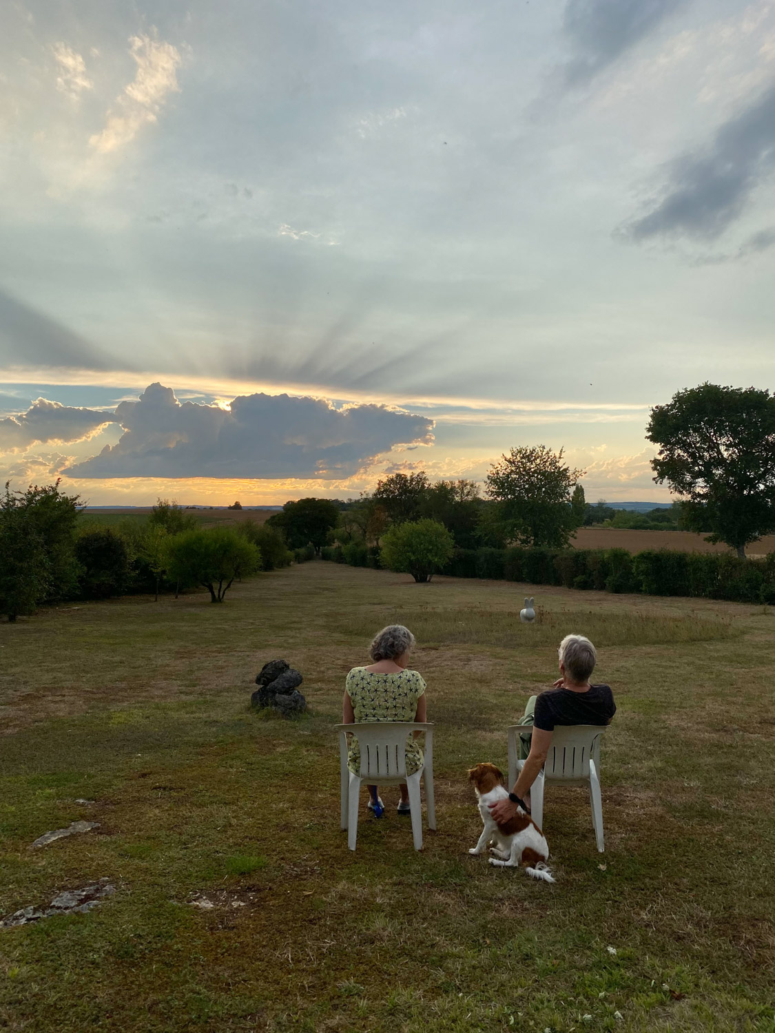 Zus Els, nichtje Emily en haar baby Finn kwamen logeren. We hadden Finn niet meer gezien sinds januari, toen ze twee weken oud was. Het is nu een hele opgewekte, lieve baby geworden die zich uitstekend kan vermaken. De plattelandslucht deed haar goed, want toen ze kwam lag ze zo’n beetje op haar deken en toen ze weg gingen, na 3 nachtjes, kroop ze. Nu gaat het druk worden voor mama Emily. Het was een gezellige tijd met kletsen, tuttelen met Finn, lekker eten, spelletjes en natuurlijk genieten van de zonsondergangen en de rust.