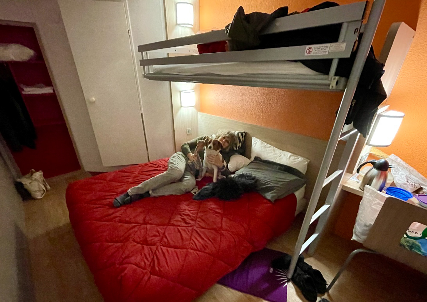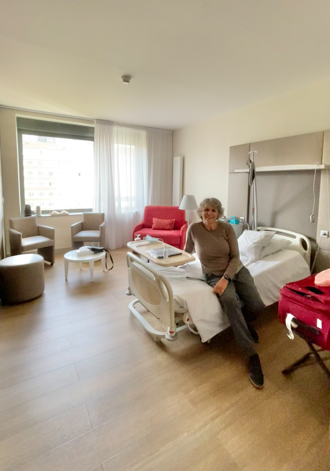 Op 15 maart werd Petra’s rechterknie vervangen door een totale knieprothese (zie hier een animatie van de operatie). We hadden tot de operatie nog gehoopt op een PUC (prothèse uni compartimentale) zoals aan de linkerkant in 2018, maar dit was helaas niet mogelijk omdat de afwijking in het rechterbeen te groot was. Het werd dus een hele prothese wat dus ook een langere revalidatie betekent. De operatie werd uitgevoerd door Luc Kerboull in clinique Arago in Parijs. Gelukkig mocht Hans ook op de kamer blijven. Dat was echt dankzij Luc, want niemand mocht verder bezoek ontvangen nog steeds vanwege covid. Dinsdag was de operatie en zaterdagochtend mochten we weer naar huis.