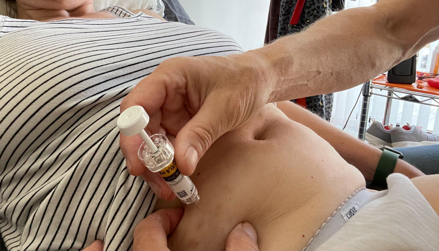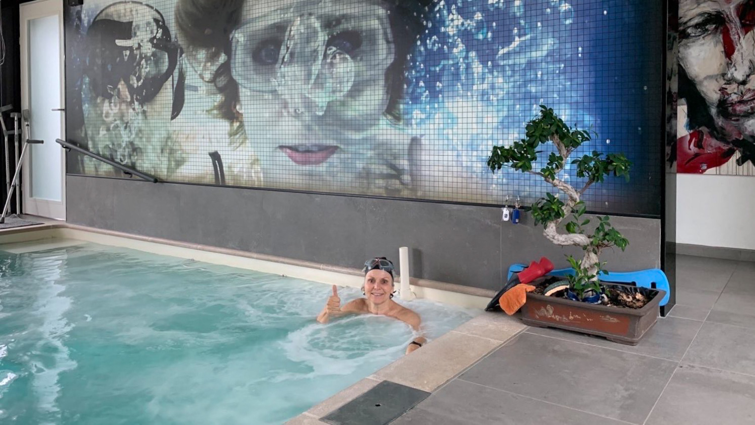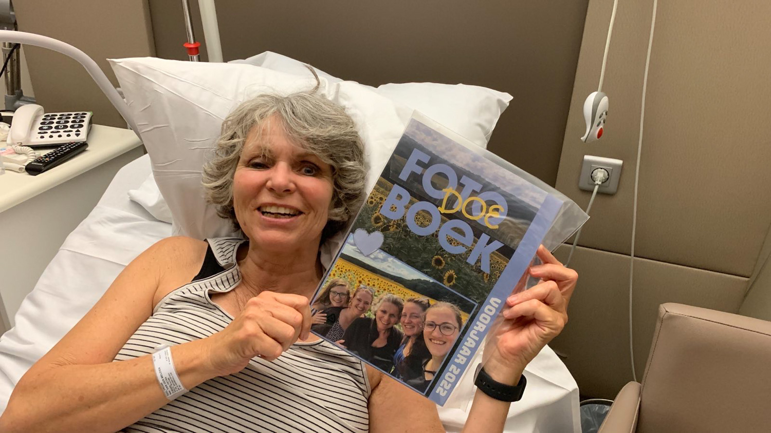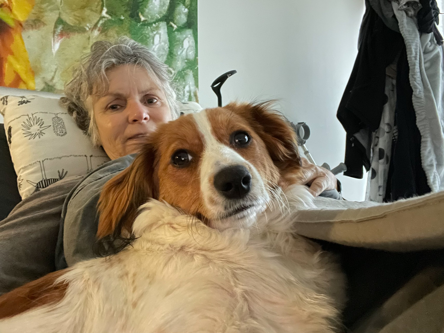 Cato was natuurlijk door het dolle heen. Die had bij Lydie gelogeerd en dat is allemaal prima gegaan. Het opkrabbelen was al met al best zwaar tot nu toe. Elke dag proberen de knie wat verder te strekken en te buigen en Petra had nogal wat complicaties met heup en rug wat het zitten moeilijk maakte. De verpleegster kwam twee keer in de week de wond verzorgen en haalde na 21 dagen de hechtingen eruit. Dat was fijn, want daarna kon Petra haar zwembadje wat het oefenen veel makkelijker maakte. Ook mochten we vandaag stoppen met antistollings prikjes tegen trombose in de buik waar we vandaag.