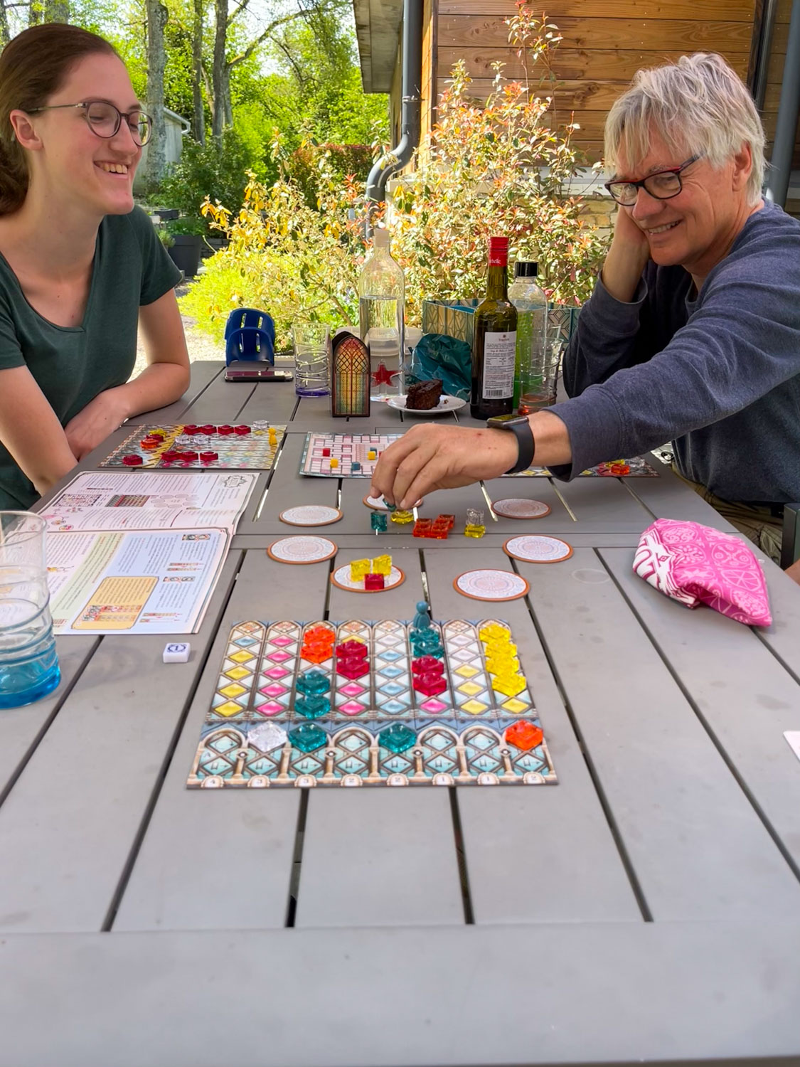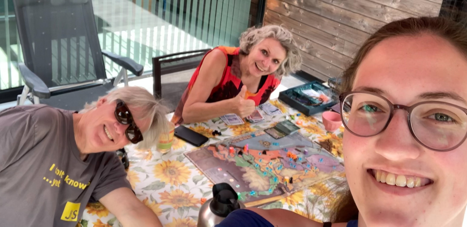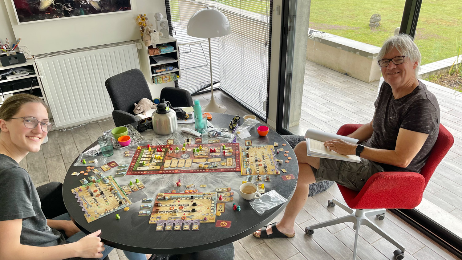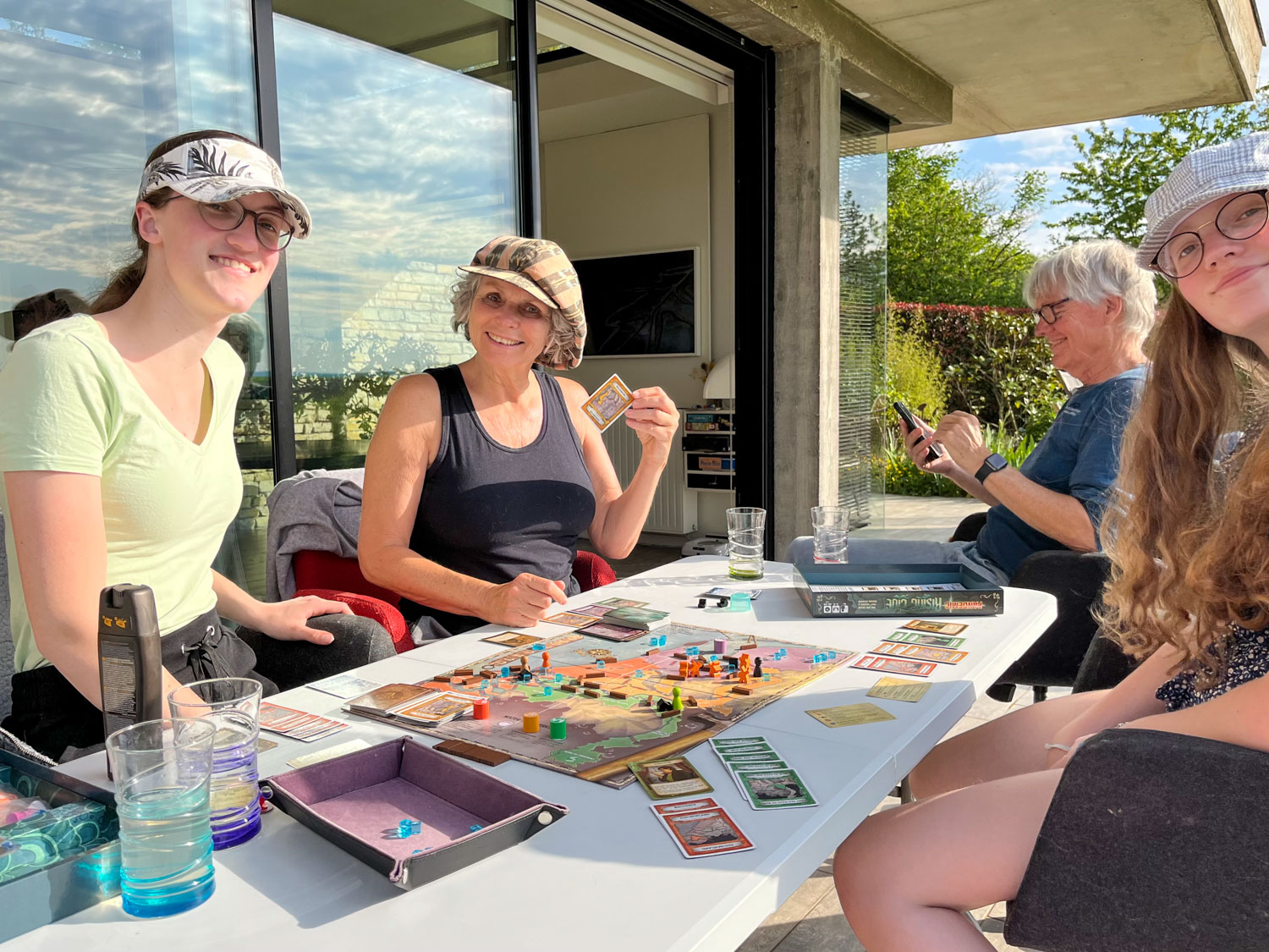 Met Mike’s meiden hebben we ook weer heel veel spelletjes gedaan, waaronder een flink aantal nieuwe: de topper was Wingspan, een heel leuk tactisch vogelspel waarbij je vogels in verschillende natuurgebieden moet uitzetten en voedsel voor hen moet verzamelen, wat weer mooie eieren oplevert. Verder Code Lill’s, een unieke op Lilly gerichte versie van Codenames, wat we voor haar verjaardag gemaakt hebben. Paye’s dobbelspel, een spel gemaakt door Pe en Faye met de speciale dobbelstenen die Petra cadeau kreeg van Faye.