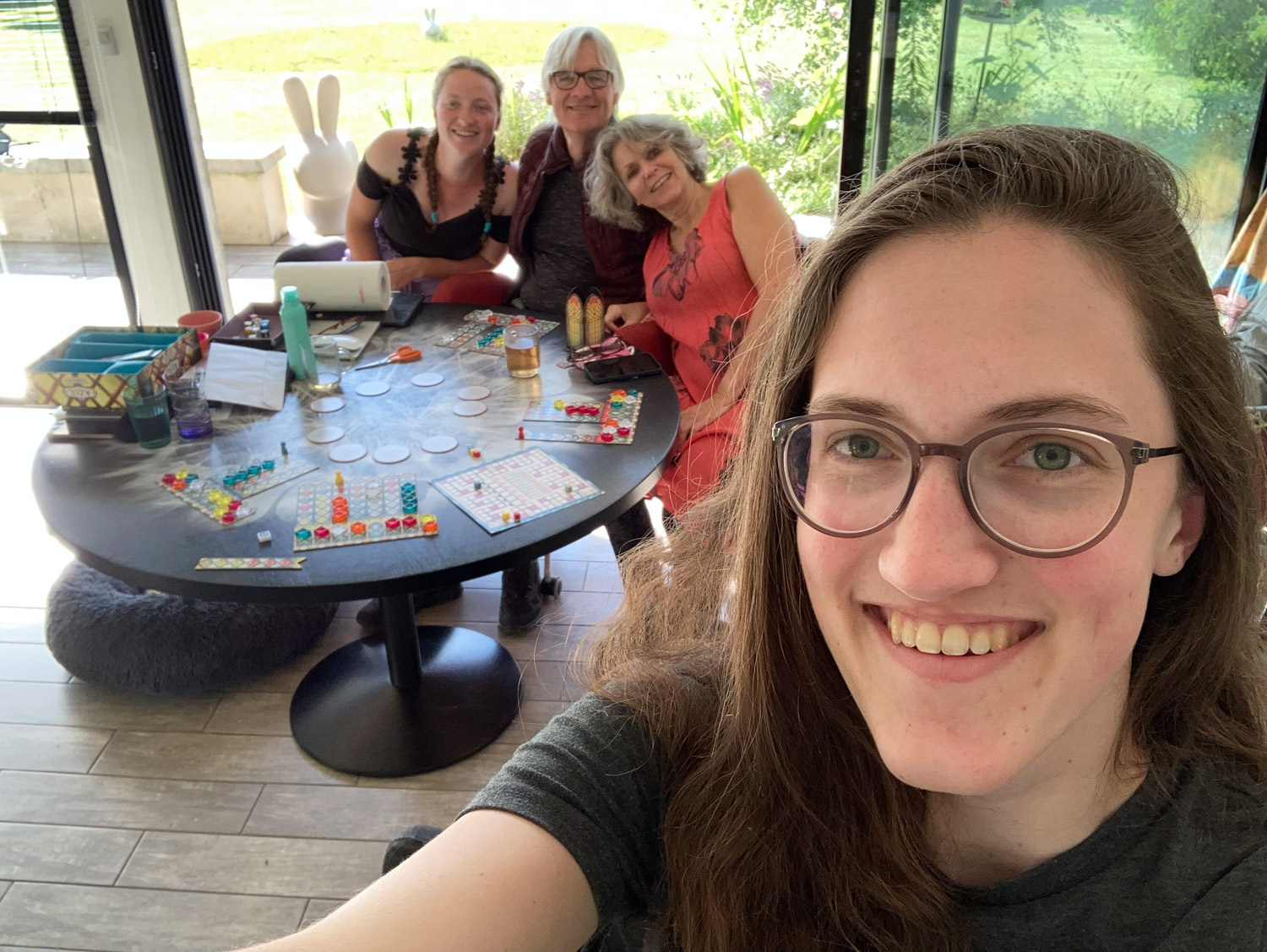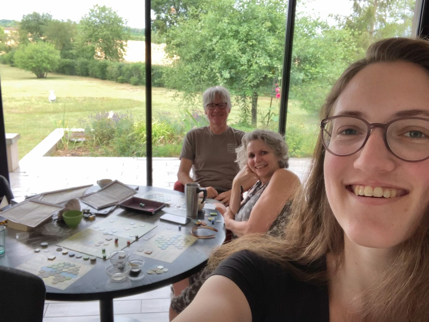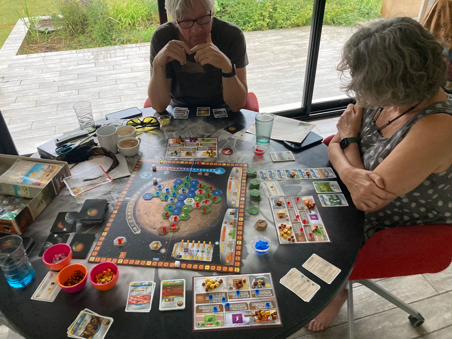 Met Mike’s meiden hebben we ook weer heel veel spelletjes gedaan, waaronder een flink aantal nieuwe: de topper was Wingspan, een heel leuk tactisch vogelspel waarbij je vogels in verschillende natuurgebieden moet uitzetten en voedsel voor hen moet verzamelen, wat weer mooie eieren oplevert. Verder Code Lill’s, een unieke op Lilly gerichte versie van Codenames, wat we voor haar verjaardag gemaakt hebben. Paye’s dobbelspel, een spel gemaakt door Pe en Faye met de speciale dobbelstenen die Petra cadeau kreeg van Faye.