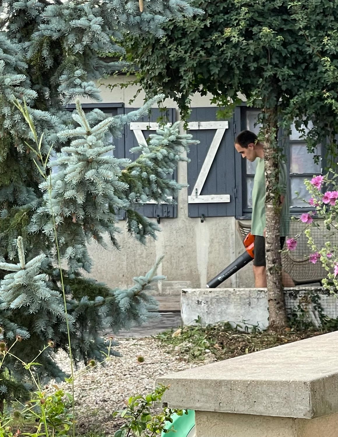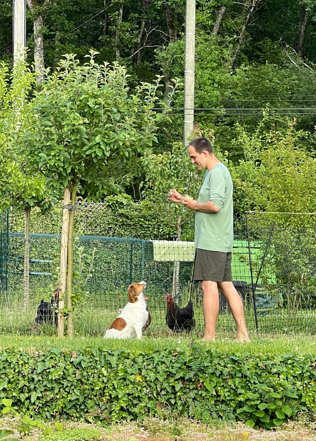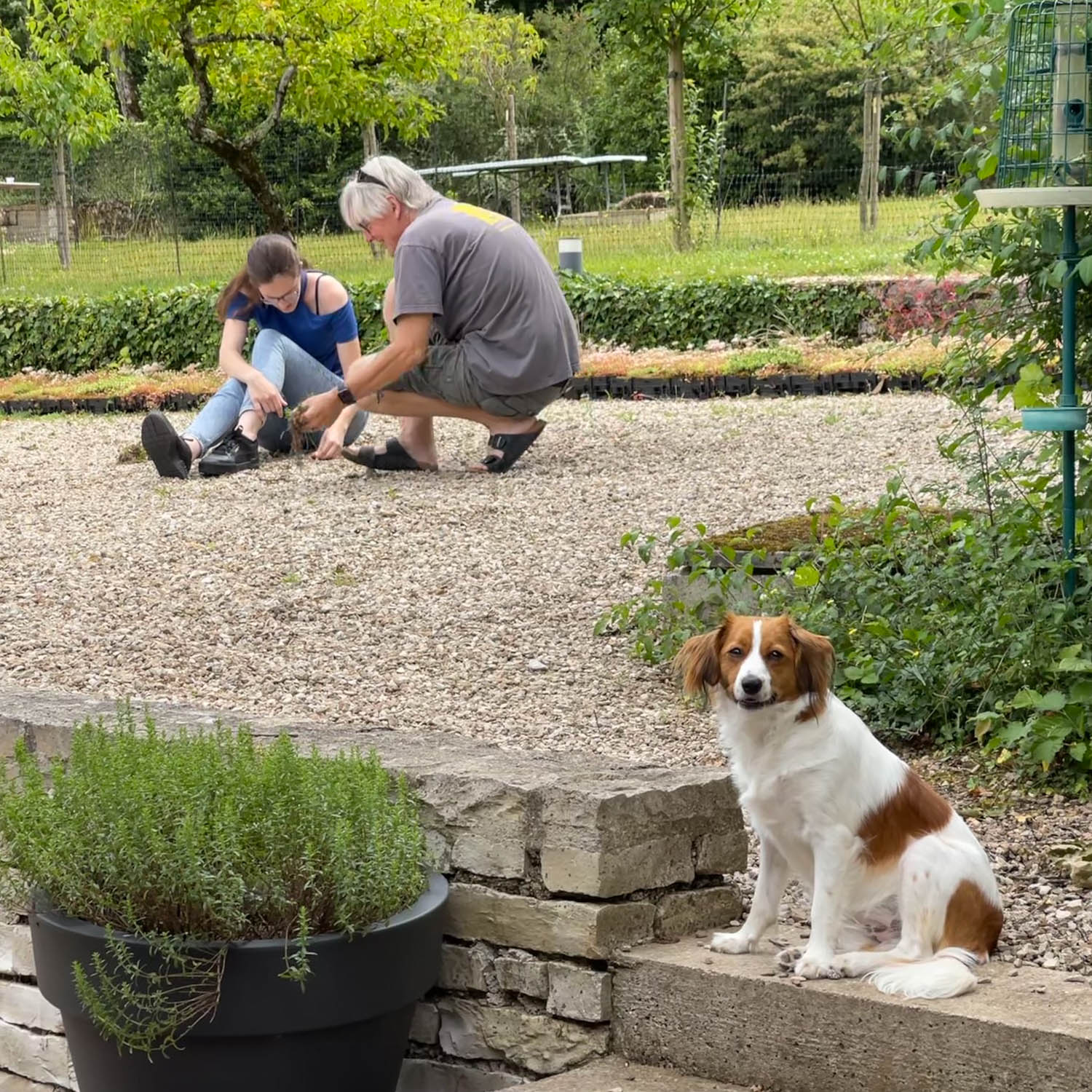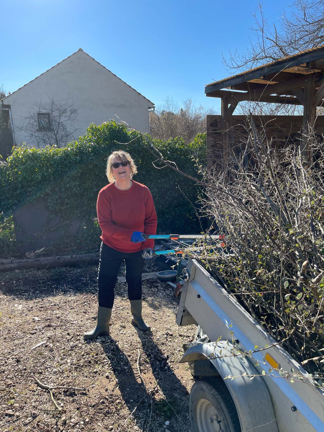 Rogier vierde zijn verjaardag dit jaar in Avigny. Een primeur! Jean-Philippe maakte een prachtige taart voor de jarige. Verder hebben Hans en Rogier het kippenverblijf uitgebreid. Ze hebben nu de hele border met struiken erbij. Dat zullen ze komende zomer echt nodig hebben want ze hadden tot nu toe niet veel schaduw. Marianne heeft alle weggesnoeide takken verwerkt om af te voeren naar de dechetterie. Het waren een paar gezellige dagen.