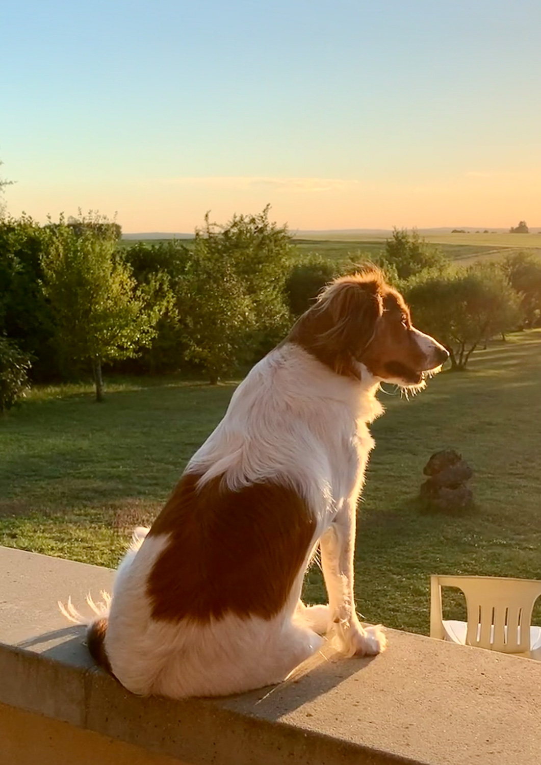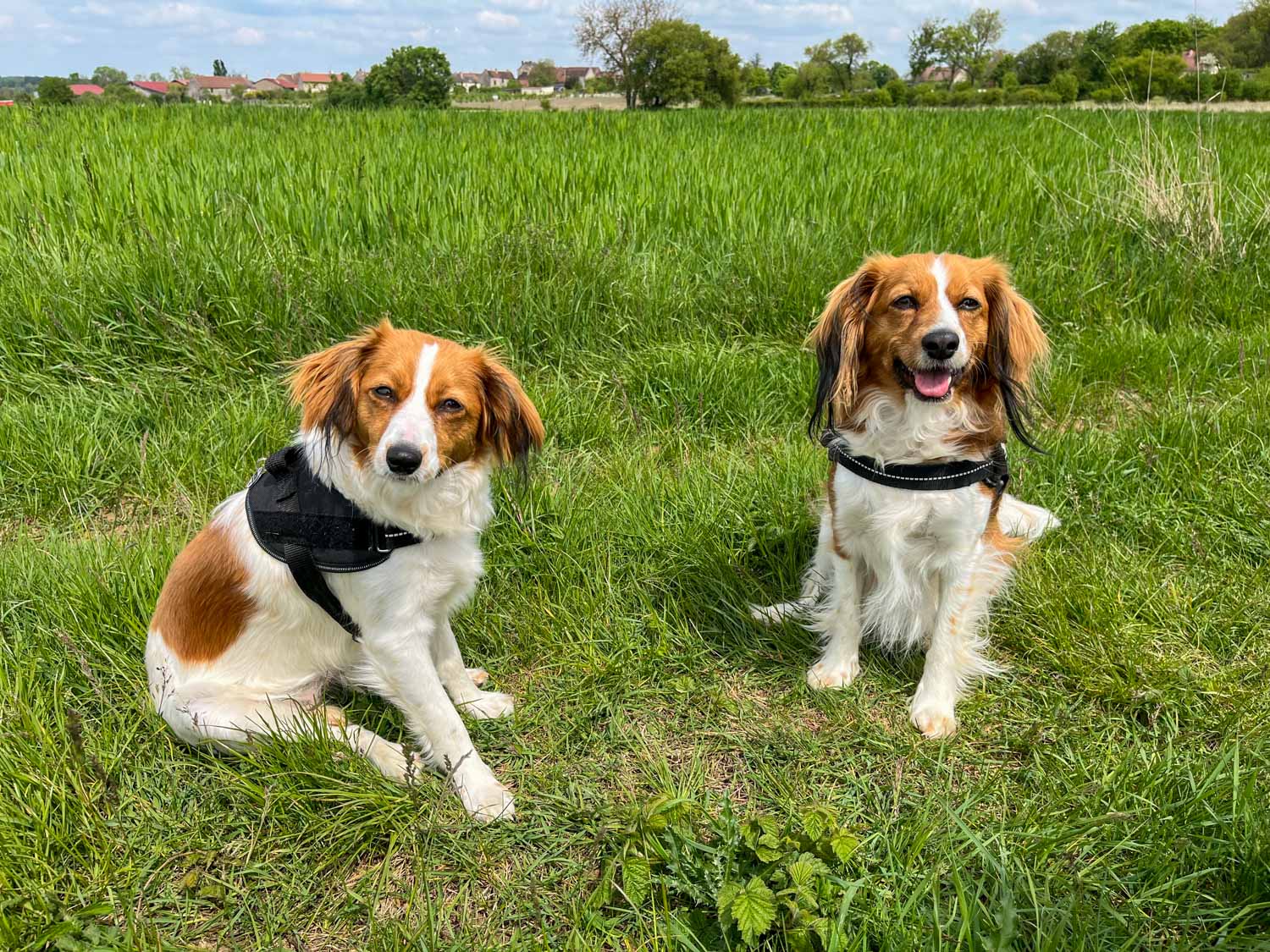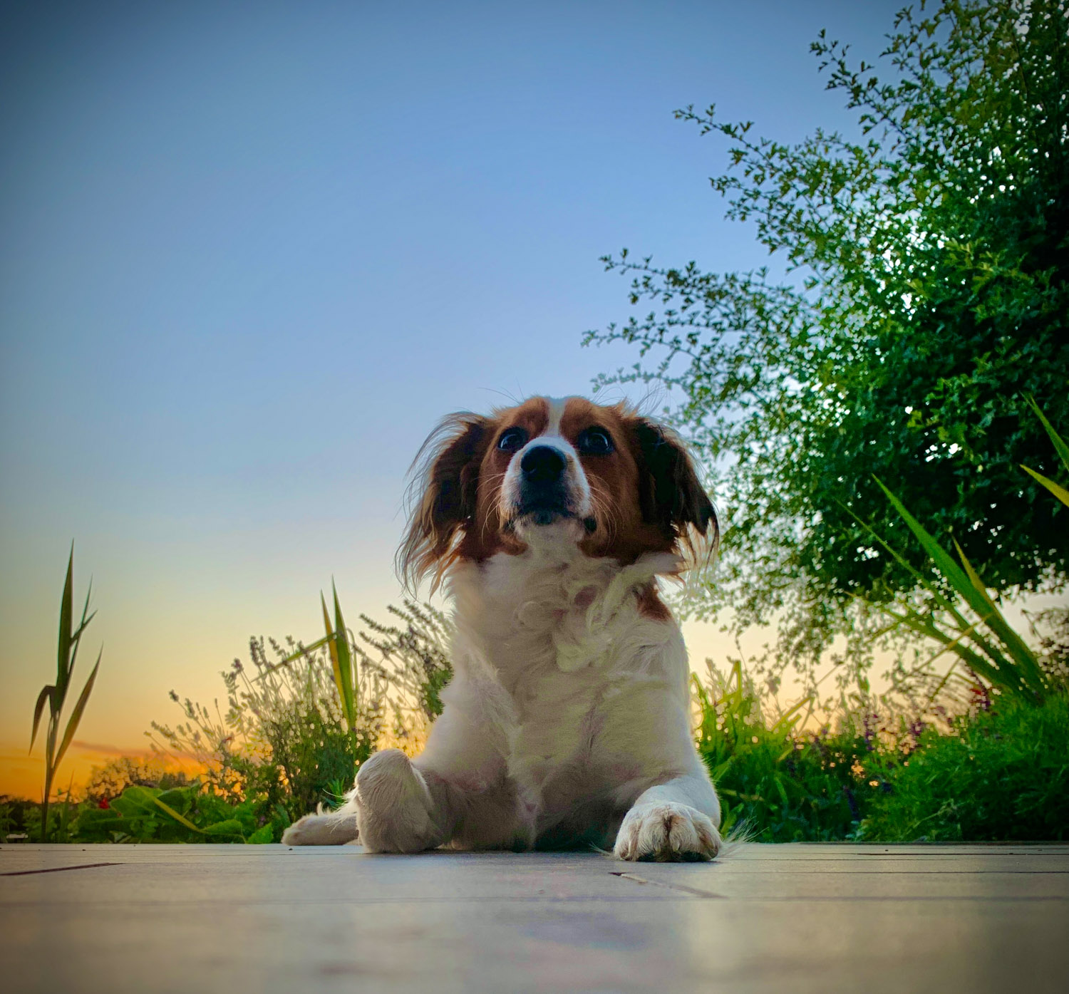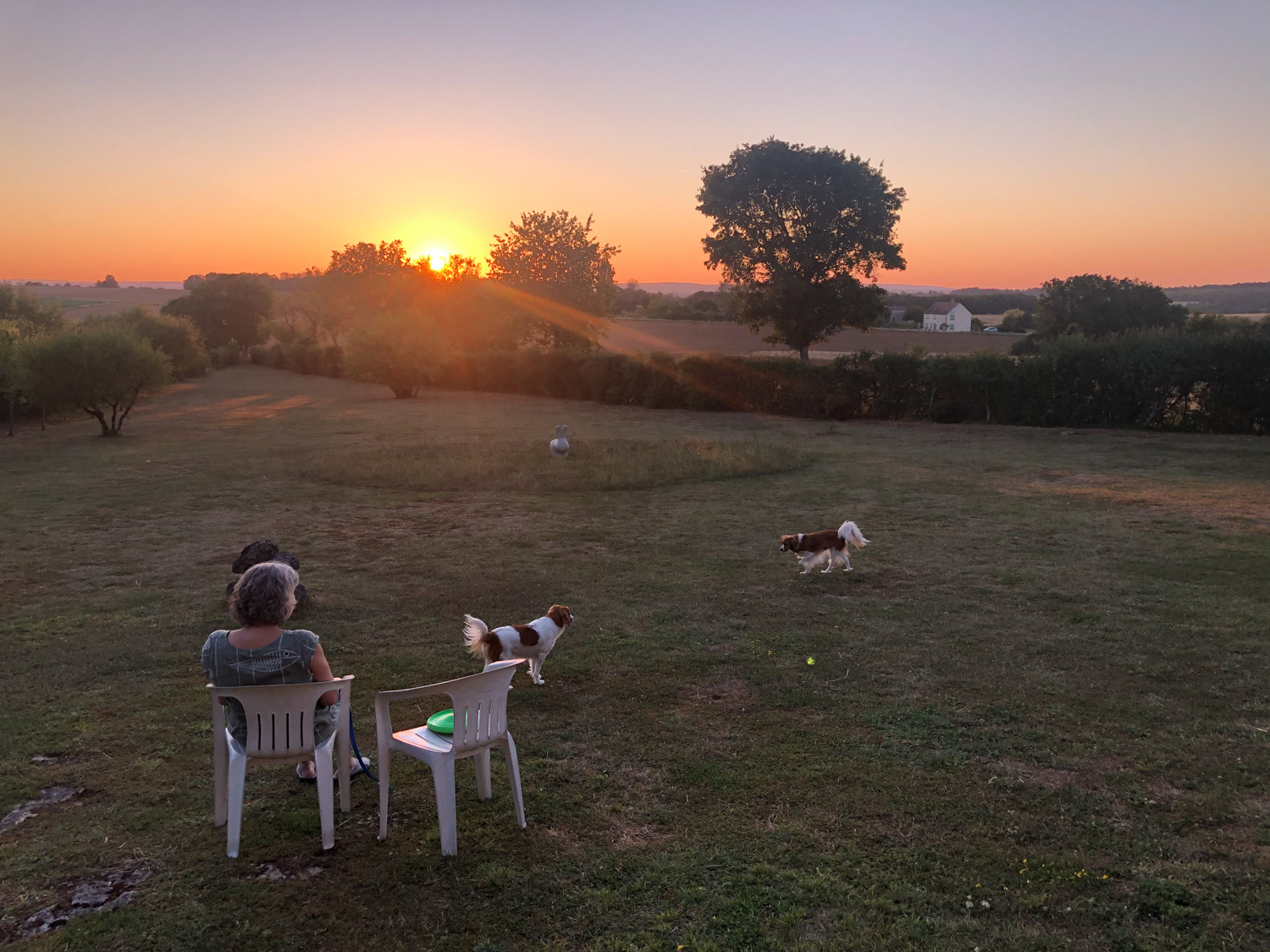 De wandelingen met de zusjes Cato en Noor waren niet te lang vanwege de hitte. Maar ‘s avonds tegen zonsondergang gingen ze met Petra en Faye naar de wei, waar uitgebreid gespeeld, geapporteerd en gerend werd. De rest keek geïnteresseerd toe, genietend van de prachtige zonsondergangen.