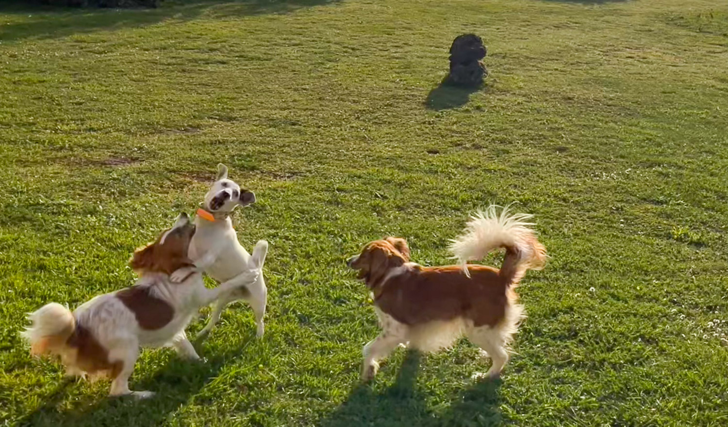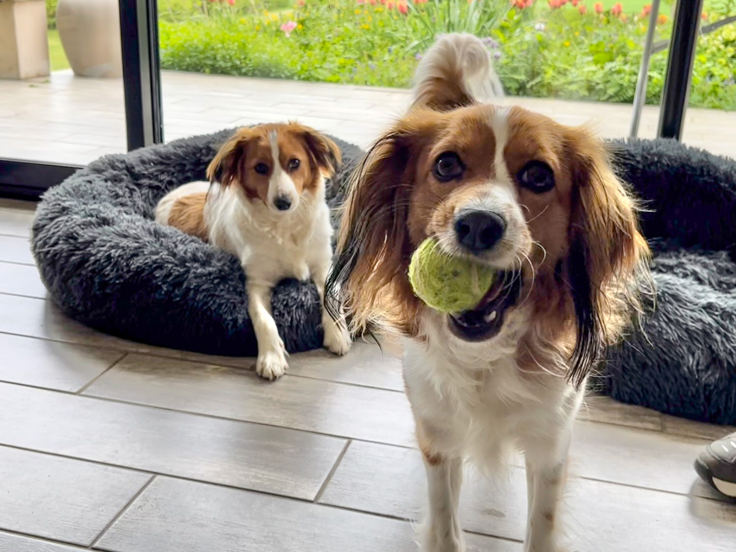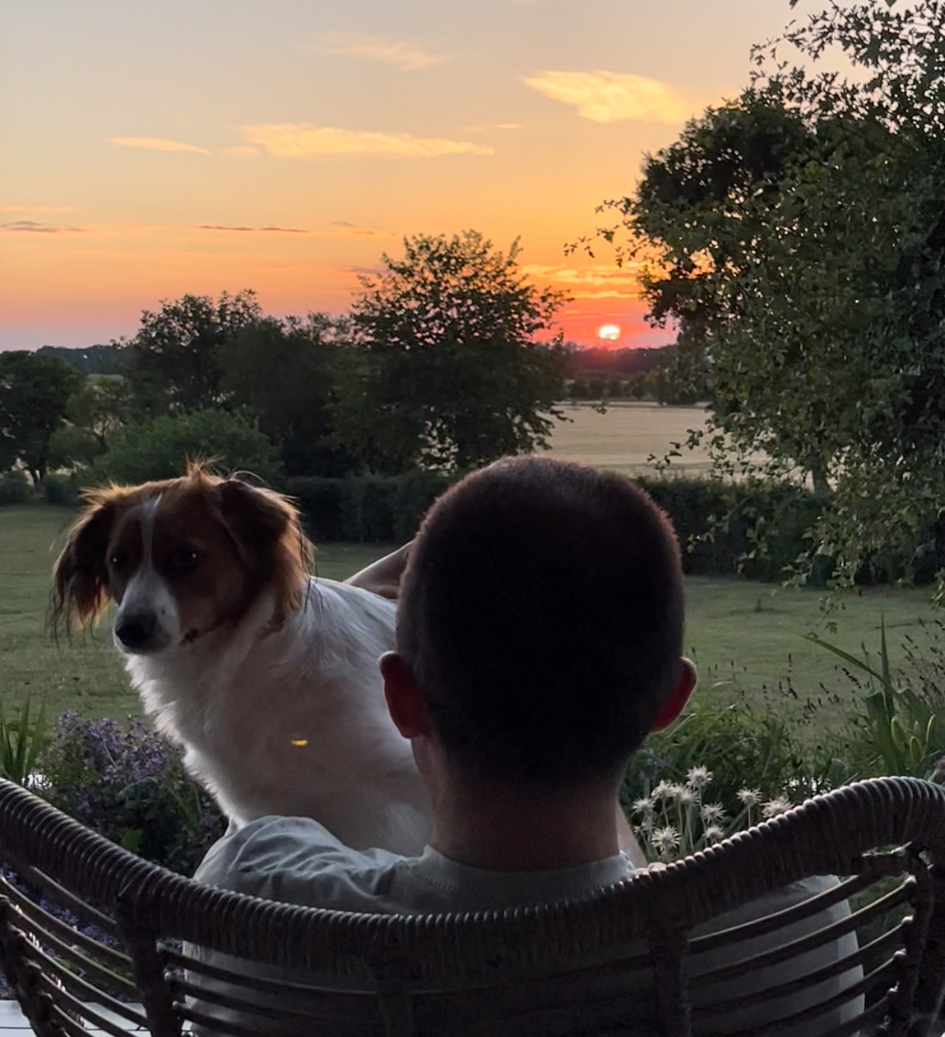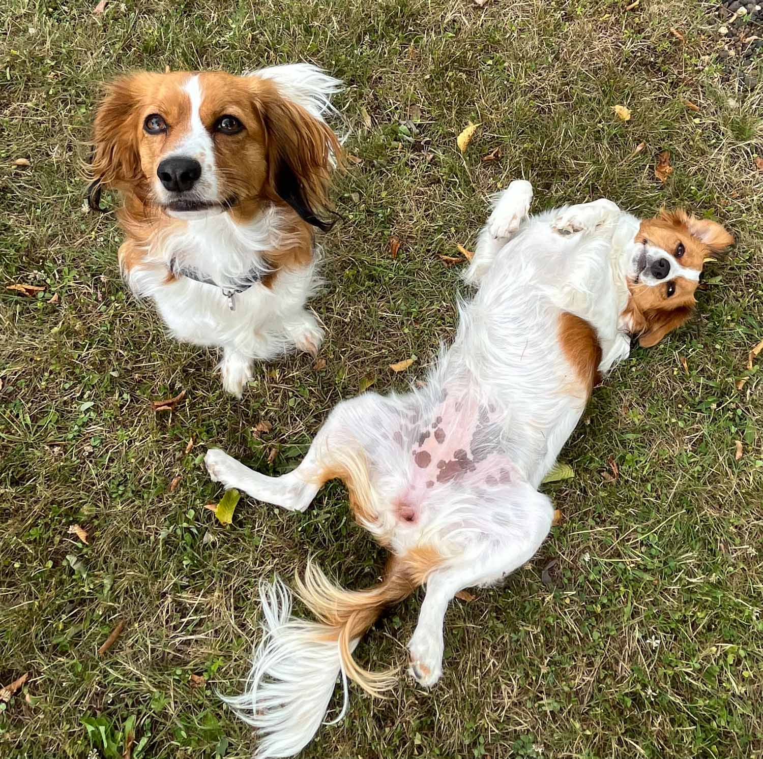 De wandelingen met de zusjes Cato en Noor waren niet te lang vanwege de hitte. Maar ‘s avonds tegen zonsondergang gingen ze met Petra en Faye naar de wei, waar uitgebreid gespeeld, geapporteerd en gerend werd. De rest keek geïnteresseerd toe, genietend van de prachtige zonsondergangen.