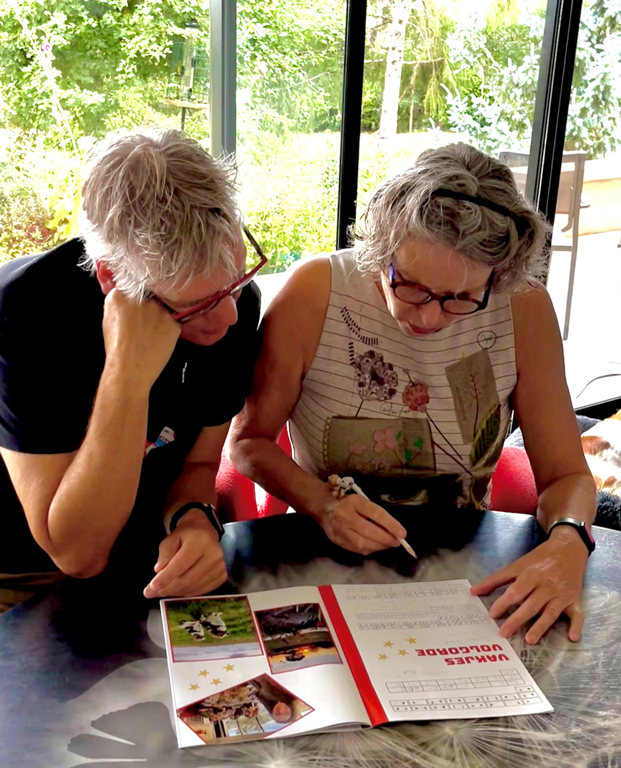 Hans en Petra kregen een fantastisch zeer persoonlijk door de meiden gemaakt Foto-doe-boek cadeau, waar elke dag een puzzel uit gemaakt werd.