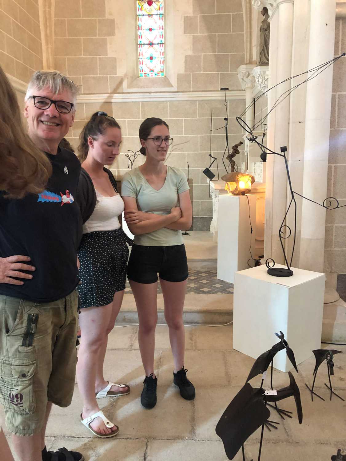 De warmte gaf niet veel lust tot uitstapjes deze zomer. Gelukkig was er een tentoonstelling in de Chapelle. Daar hoefden we alleen maar voor naar de overkant. Er exposeerden een paar lokale kunstenaars waaronder Bernard Rougegrez, die hele leuke vogels heef gelast. We hebben er allebei een van hem gekocht.