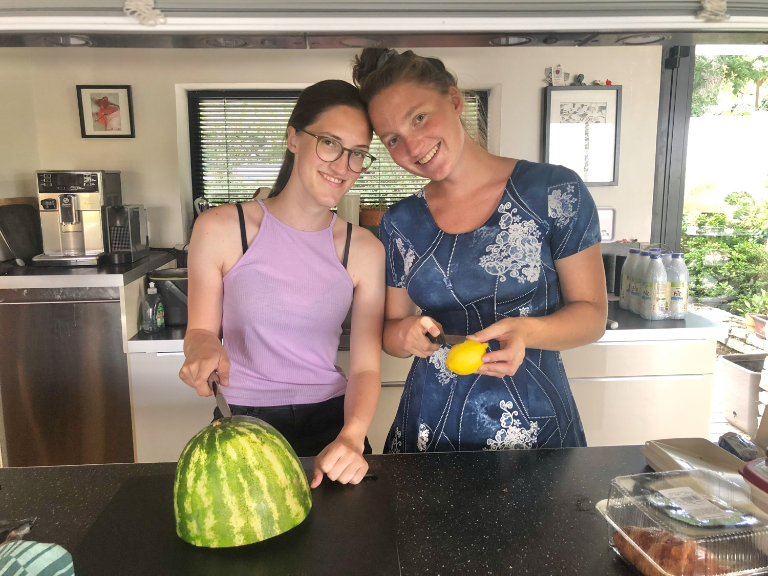 Er werd natuurlijk weer druk gekokkereld. Vanwege de warmte was het ijs in trek. We hebben veel verschillende soorten sorbetijs gemaakt. Verder onze traditionele maaltijden: pannenkoeken, pasta, watermeloensap, pizza etc.